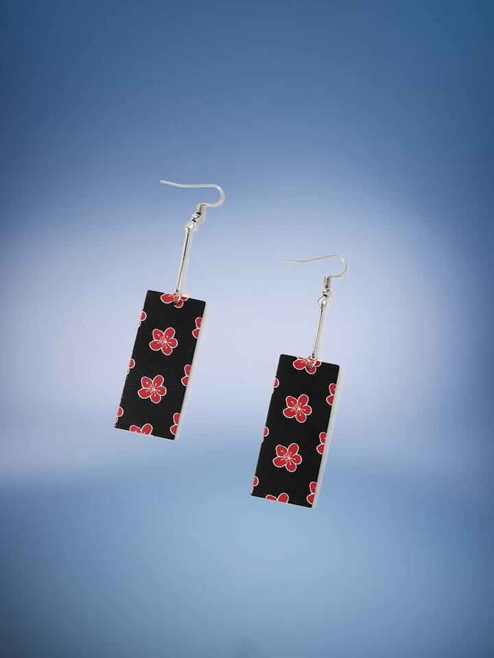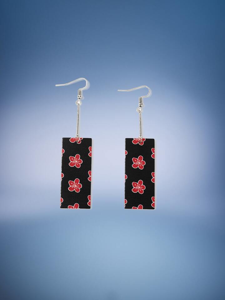 J-Fashion Floral Pattern Square Decor Drop Earrings
