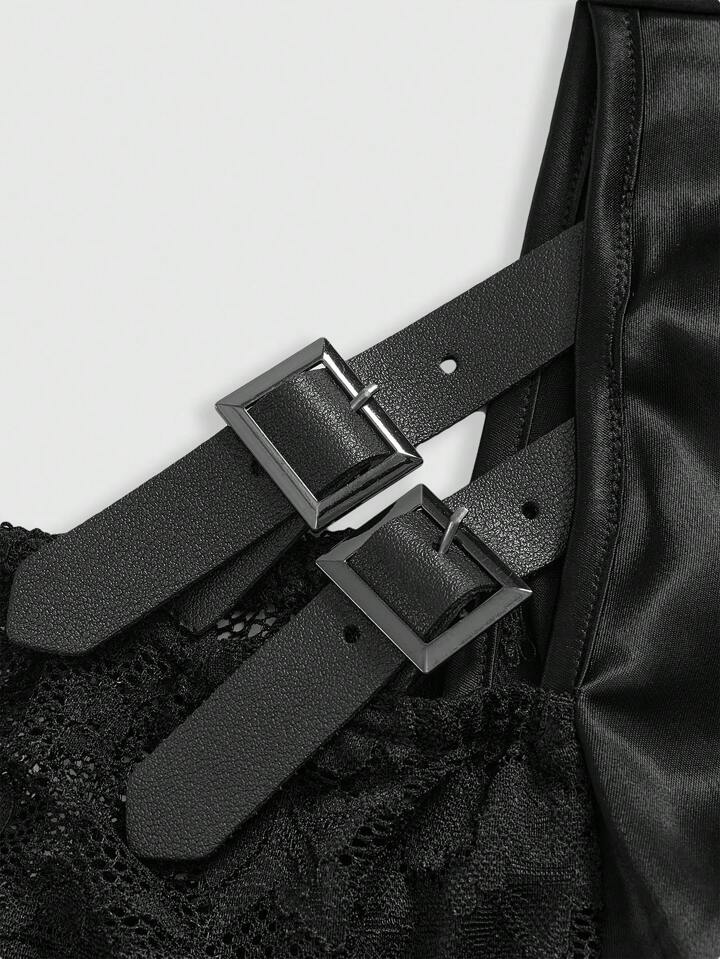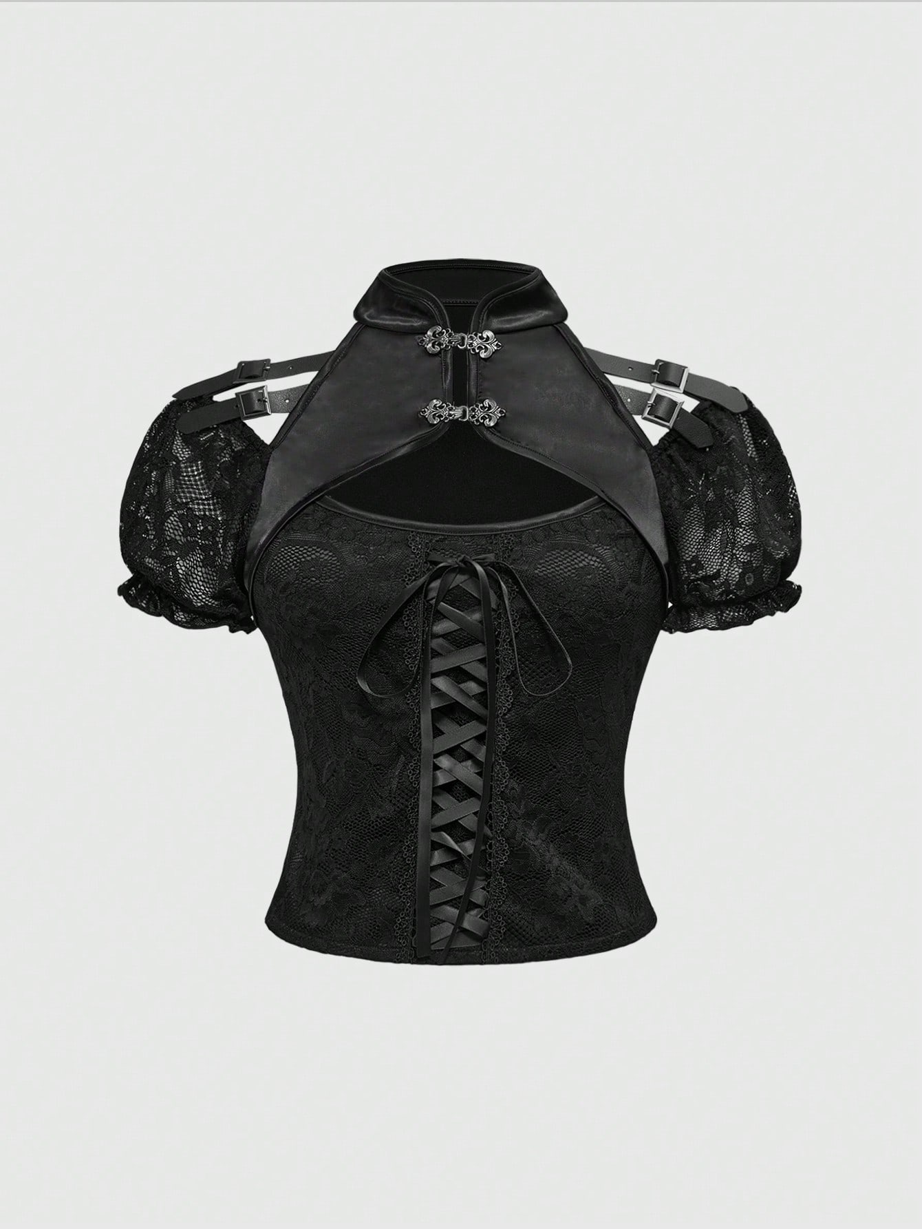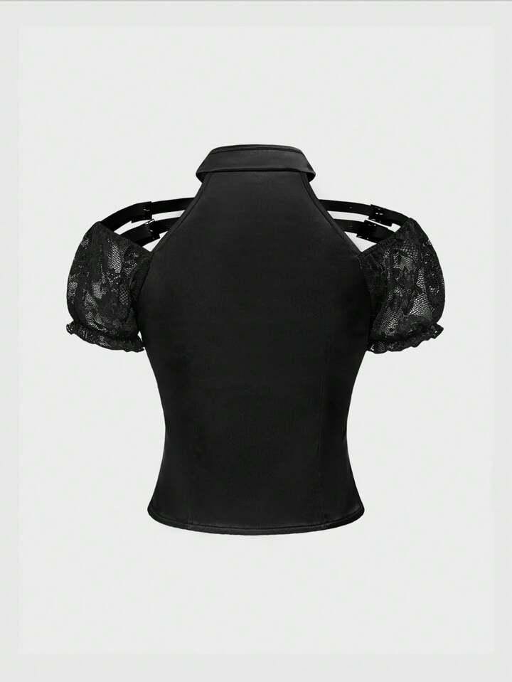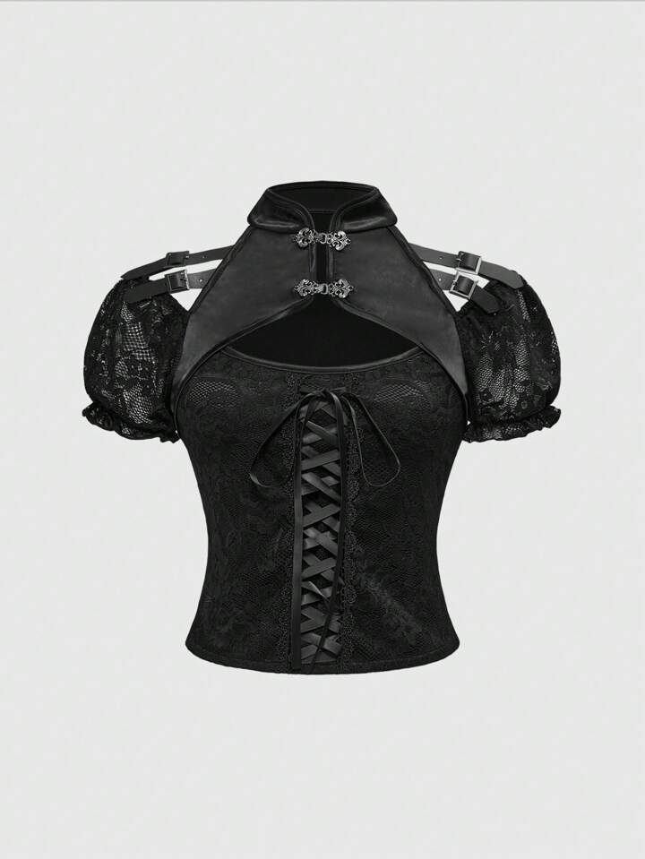 J-Fashion Goth Style Hollow Metallic Buckle Lace-Up Women T-Shirt