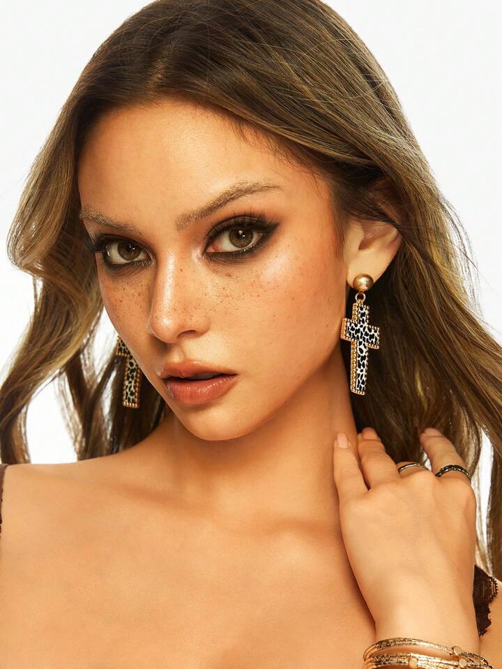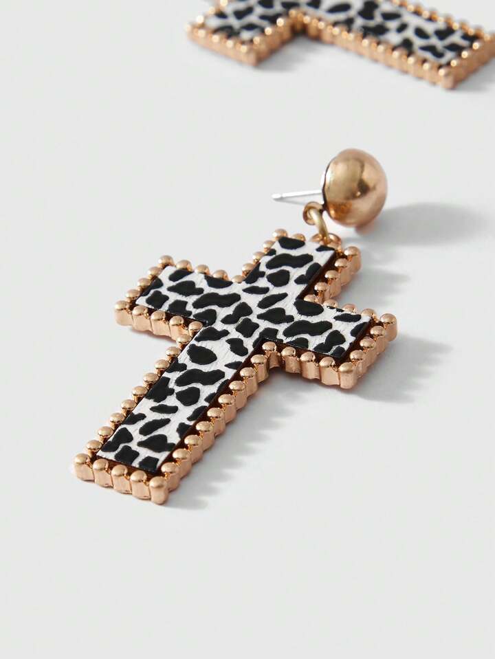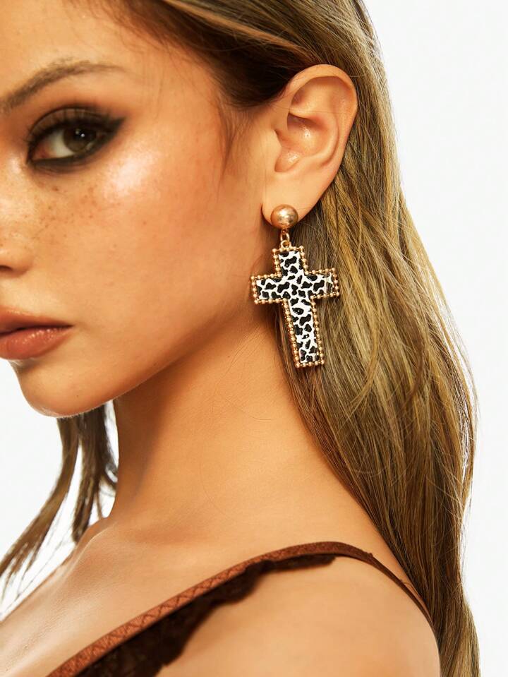 J-Fashion Halloween Fashionable Leopard Print Cross Drop Earrings, Suitable For Women Daily And Festival Wearing