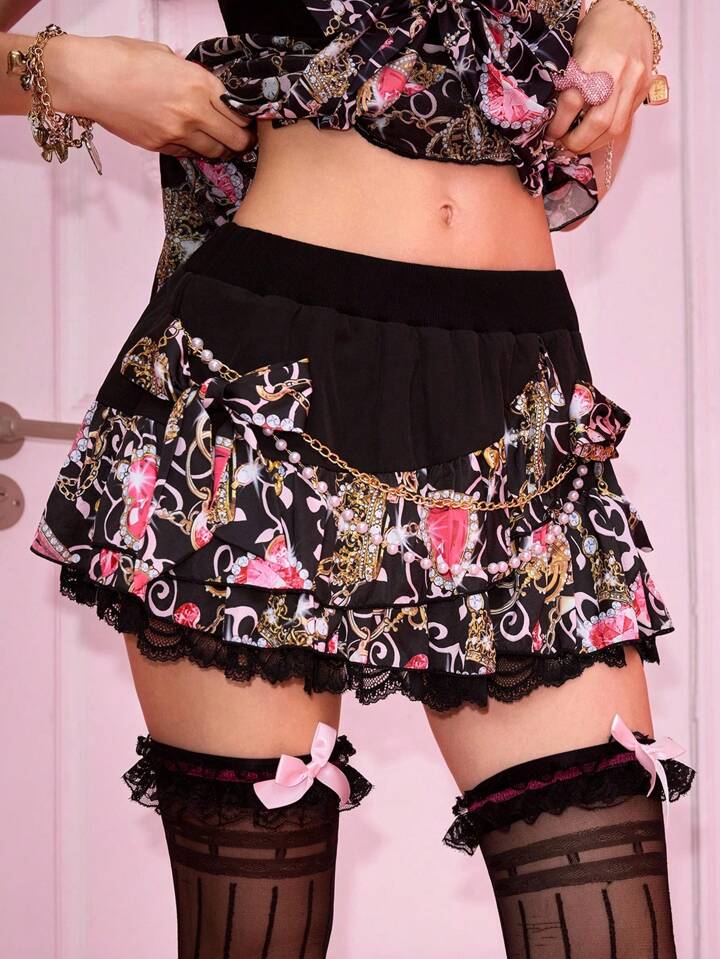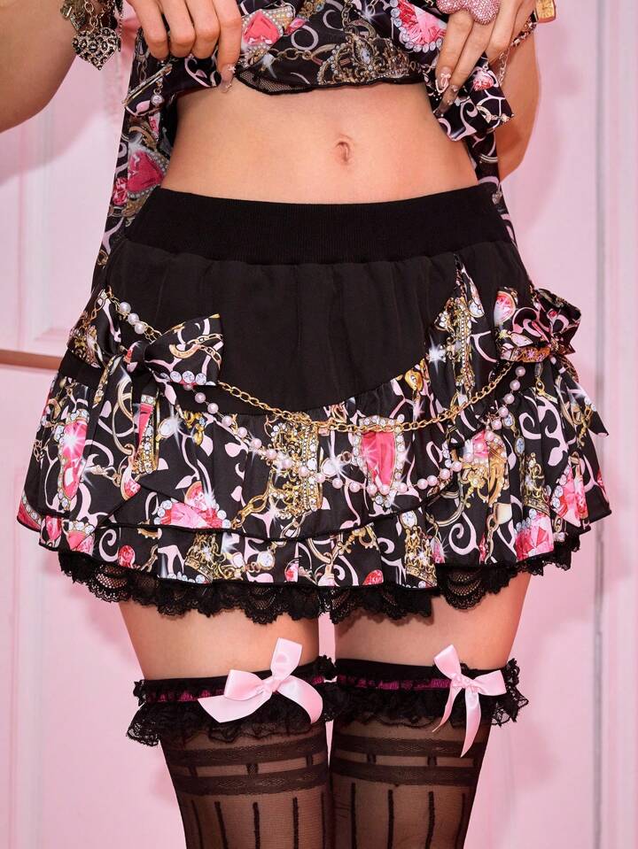 J-Fashion Himekaji Shibuya Style Sexy Fragrance Chain Butterfly Graphic Mini Skirt For Women
