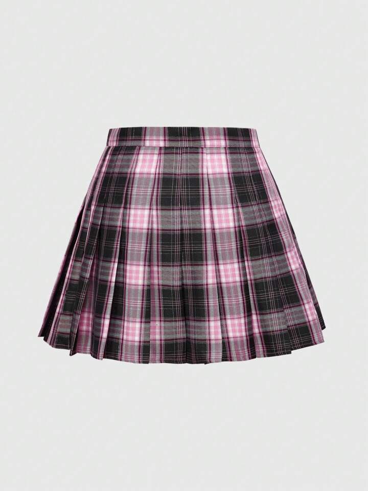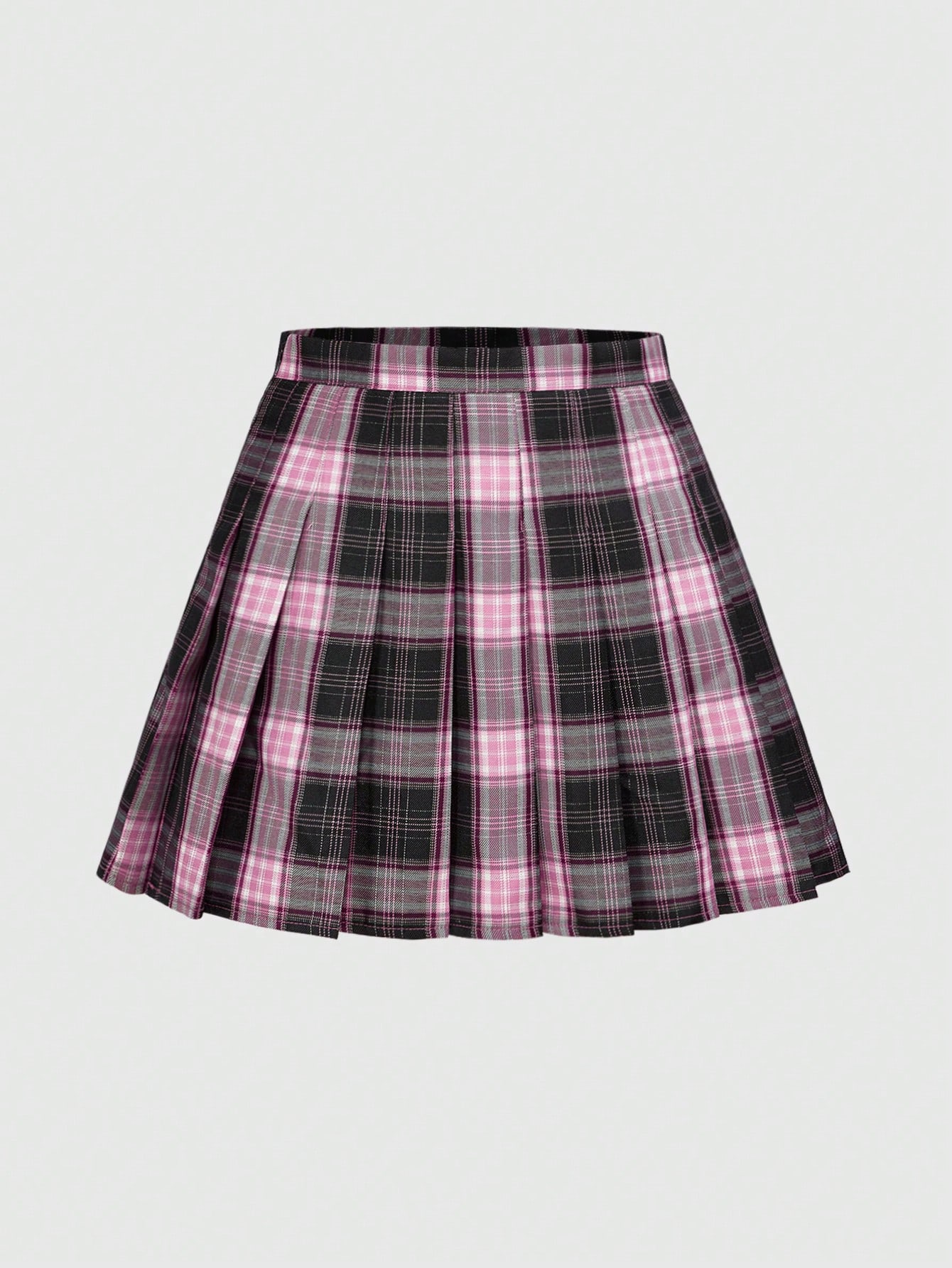 J-Fashion Plaid Printed Casual Versatile & Fashionable A-Line Skirt, Summer
