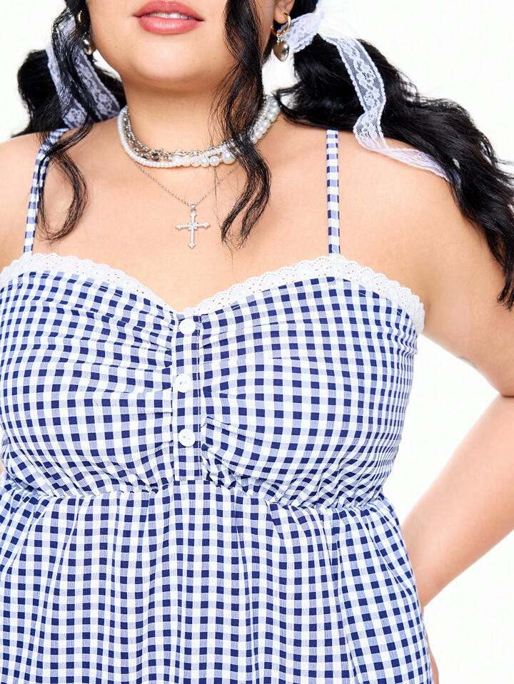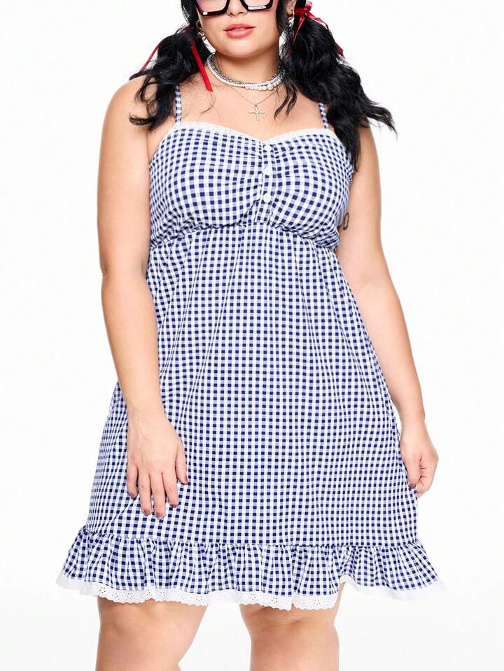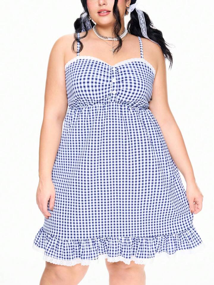 J-Fashion Plaid Ruffle Trim Plus Size Vacation Dress For Women