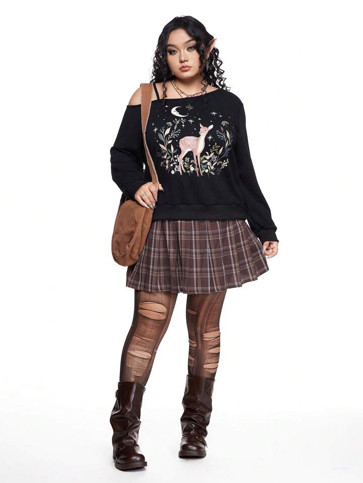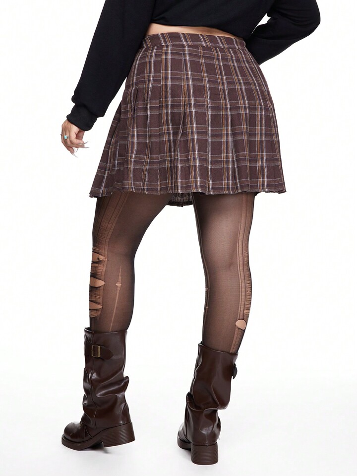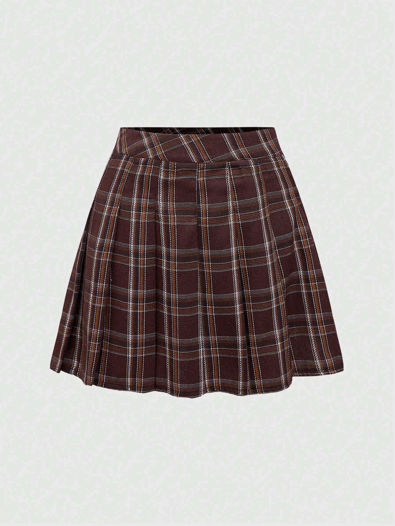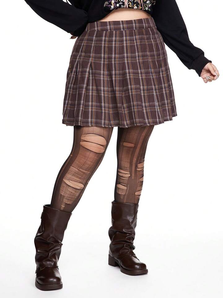 J-Fashion Plus Size Women Plaid Pleated Short Casual A-Line Skirt