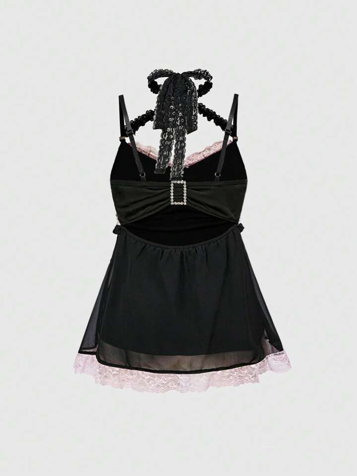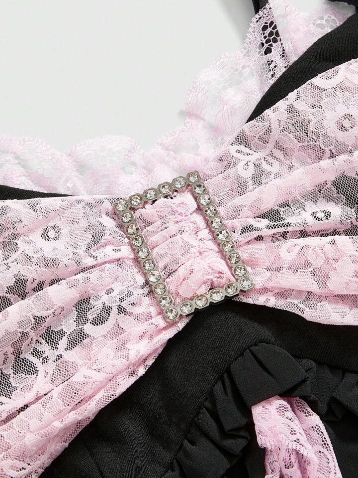 J-Fashion Plus Size Women's Kawaii Diamond Decor Lace Patchwork Bow Tank Top