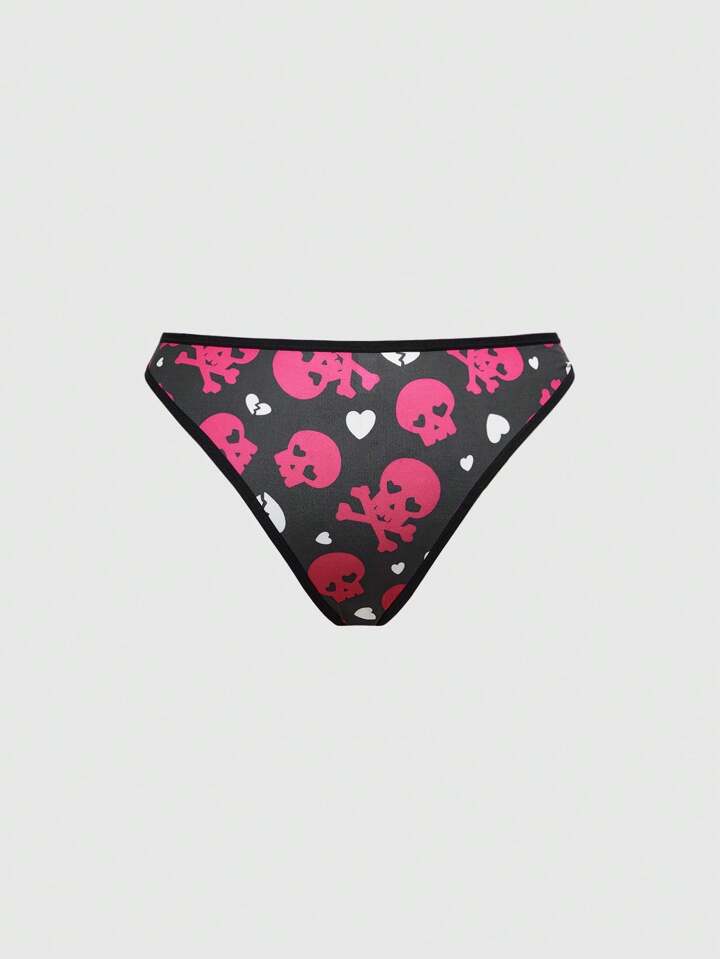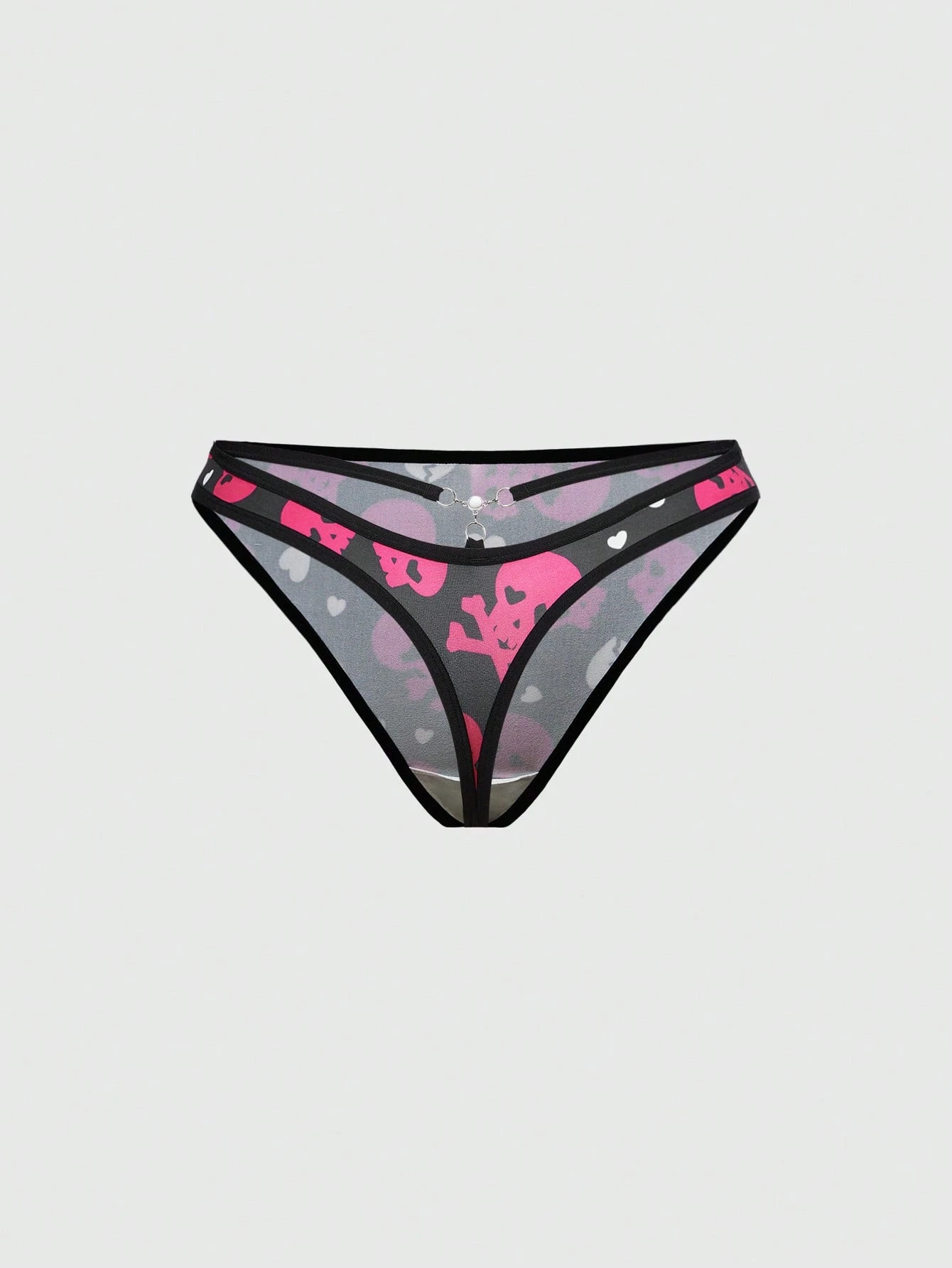 J-Fashion Plus Size Y2K Skeleton Heart Print Metallic Decor Underwear