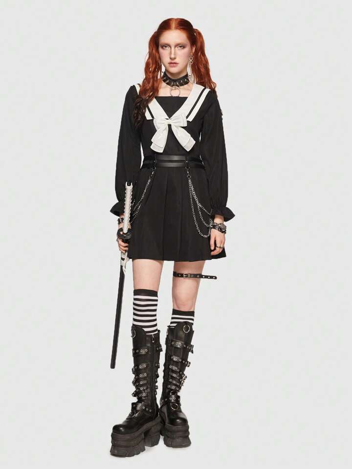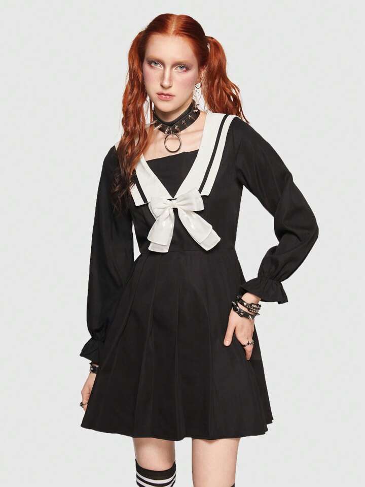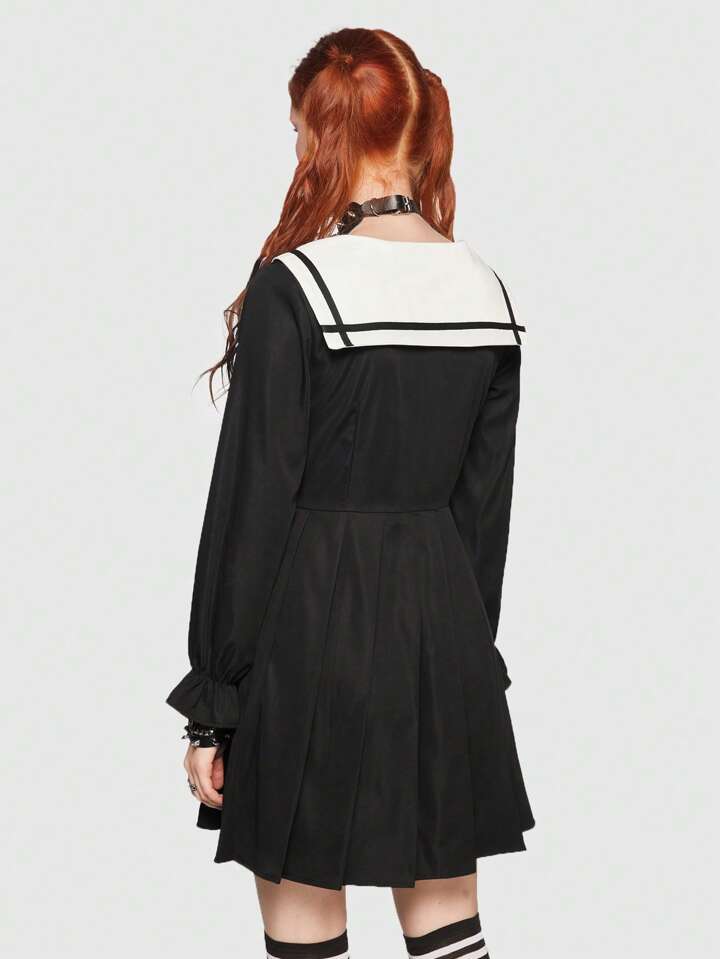 J-Fashion Sailor Collar Pleated Hem Dress Without Belt