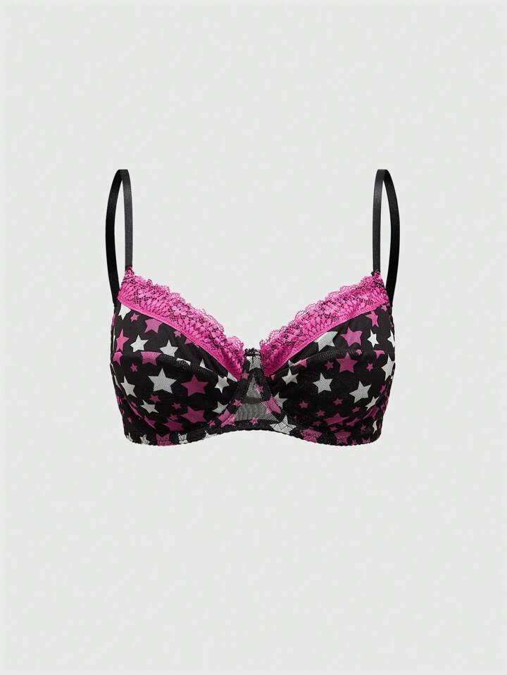 J-Fashion Shibuya Gal Five-Pointed Star & Lace Patchwork Sexy Mesh Lingerie Set