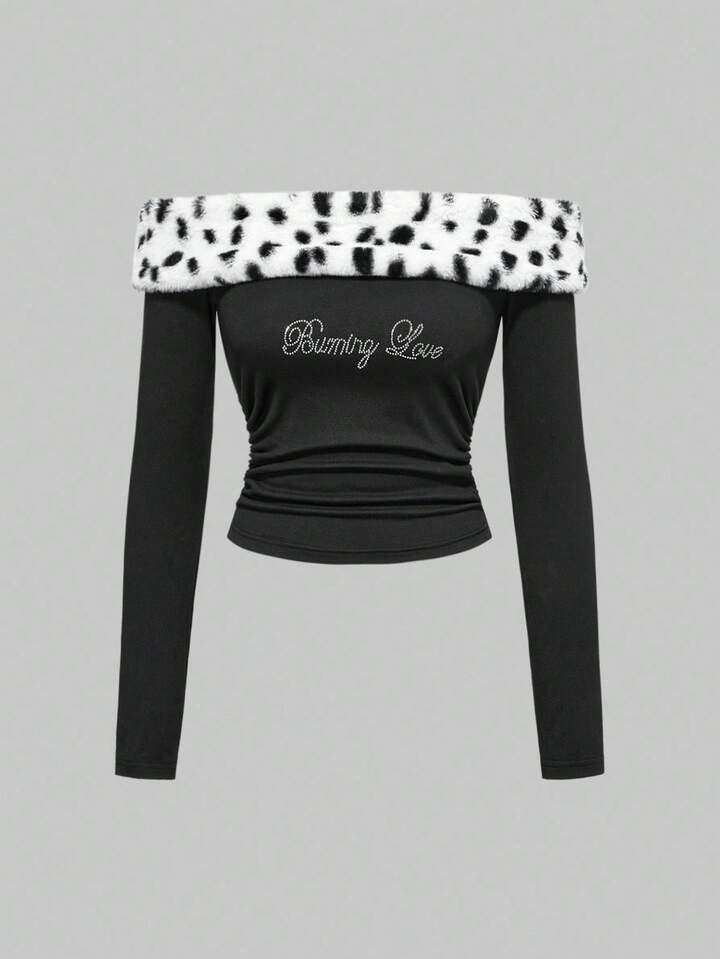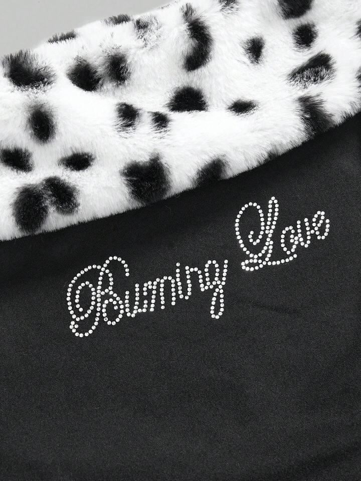 J-Fashion Shibuya Subculture Faux Fur Zebra Print Patchwork Knit Slim Fit Rhinestone Embellished Women Top, Valentine's Day