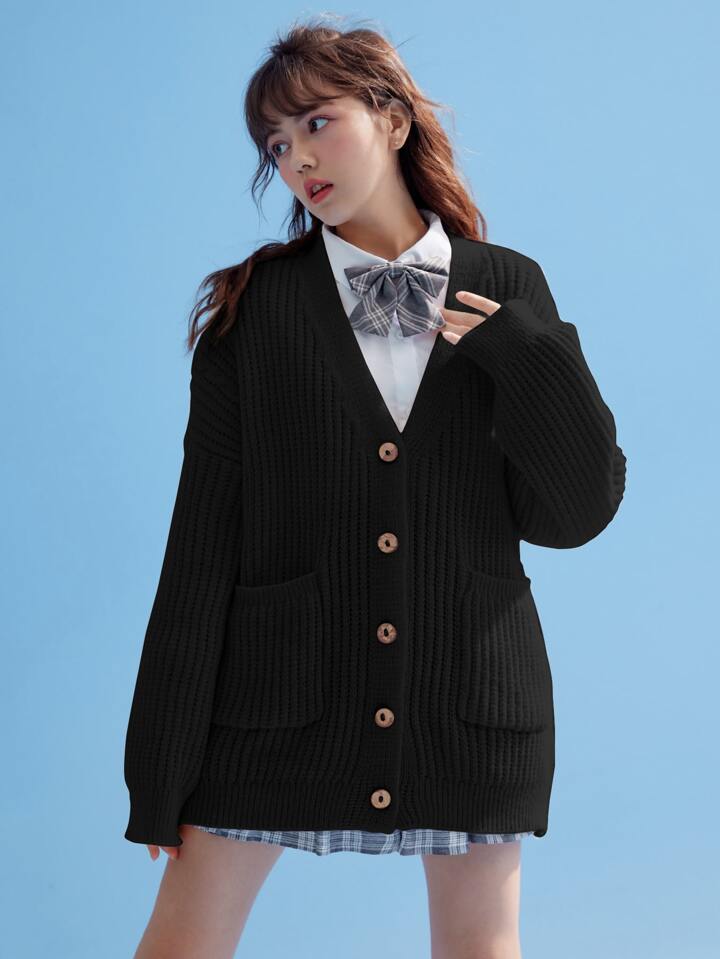 J-Fashion Solid Button Front Cardigan, School,Long Sleeve Tops