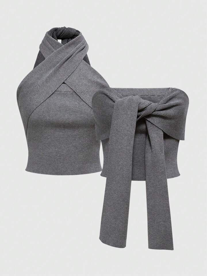 J-Fashion Versatile Knit Camisole Top With Front Tie, Convertible Style, Back To School Essential