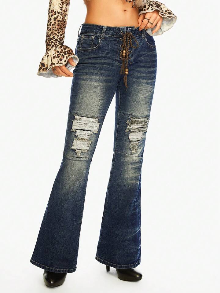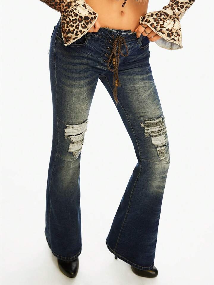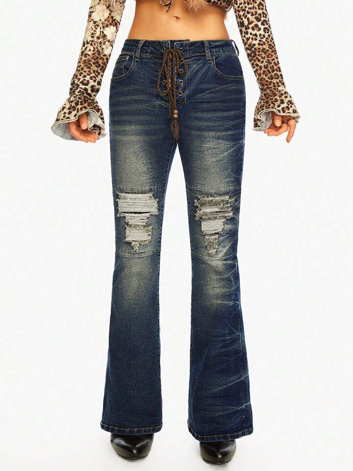 J-Fashion Vintage Autumn/Winter Distressed Old-Fashioned Flared Jeans For Women