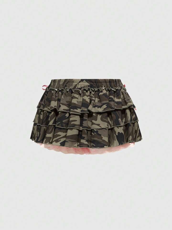 J-Fashion Women's Camouflage Print Lace Trim Peplum Skirt Pants
