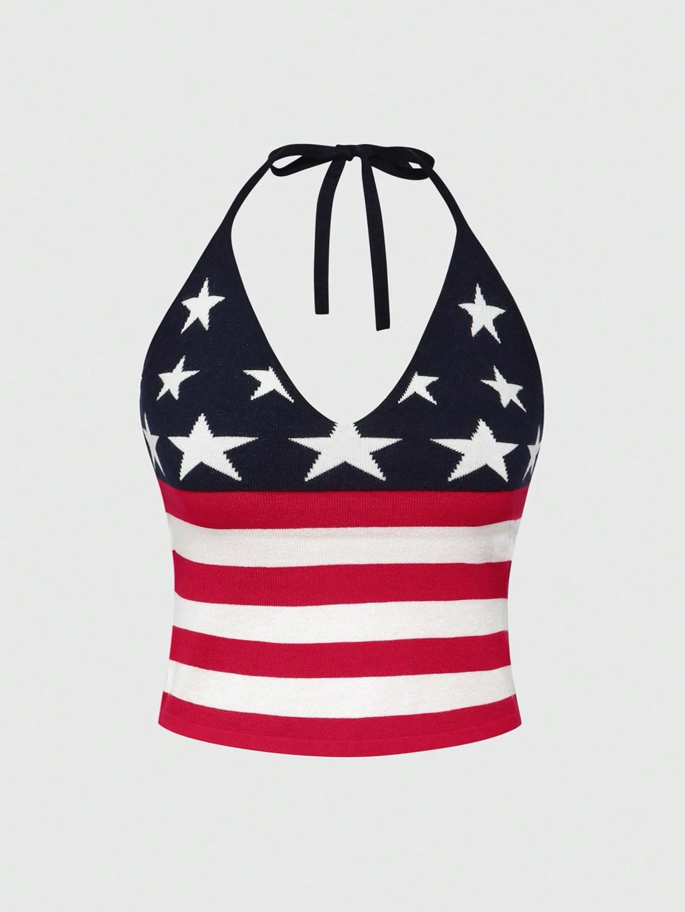 J-Fashion Women's Cute And Comfortable 90s Y2K American Flag Print Knit Camisole