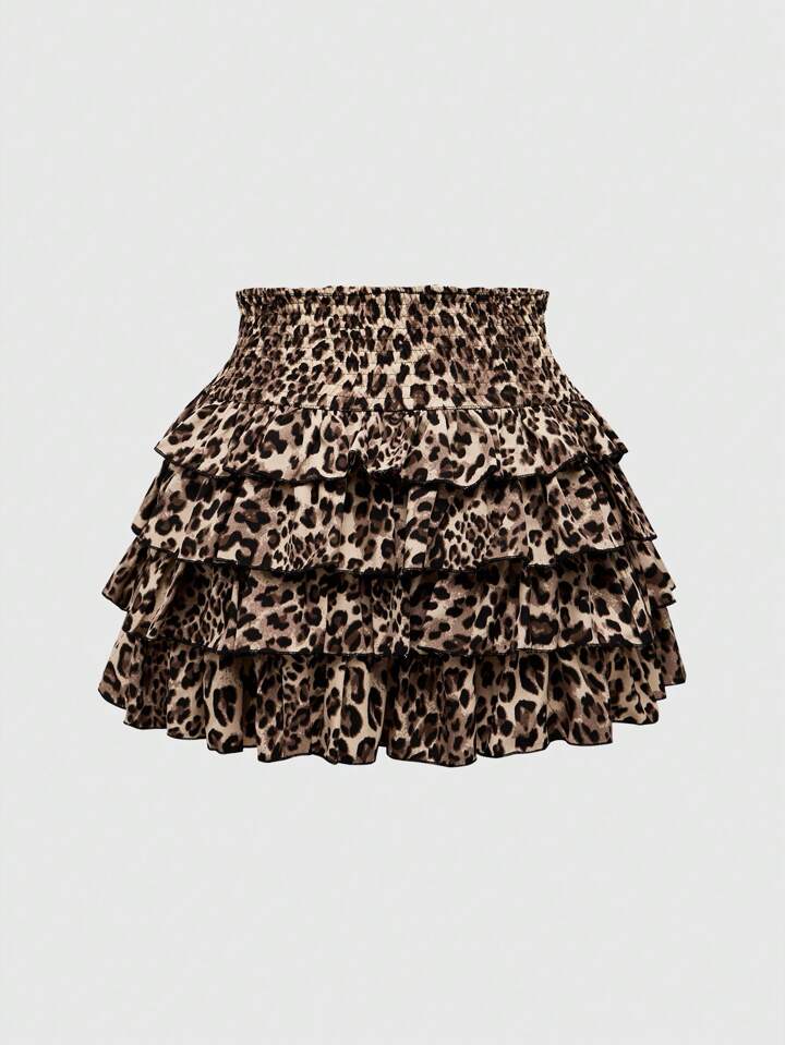 J-Fashion Women's Gyaru Summer Leopard Print Layered Ruffle Hem Skirt