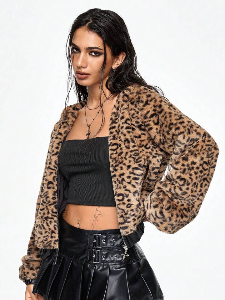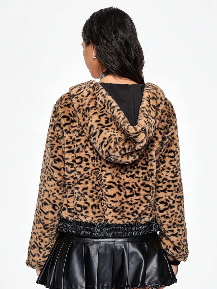 J-Fashion Women's Leopard Print Fluffy Jacket