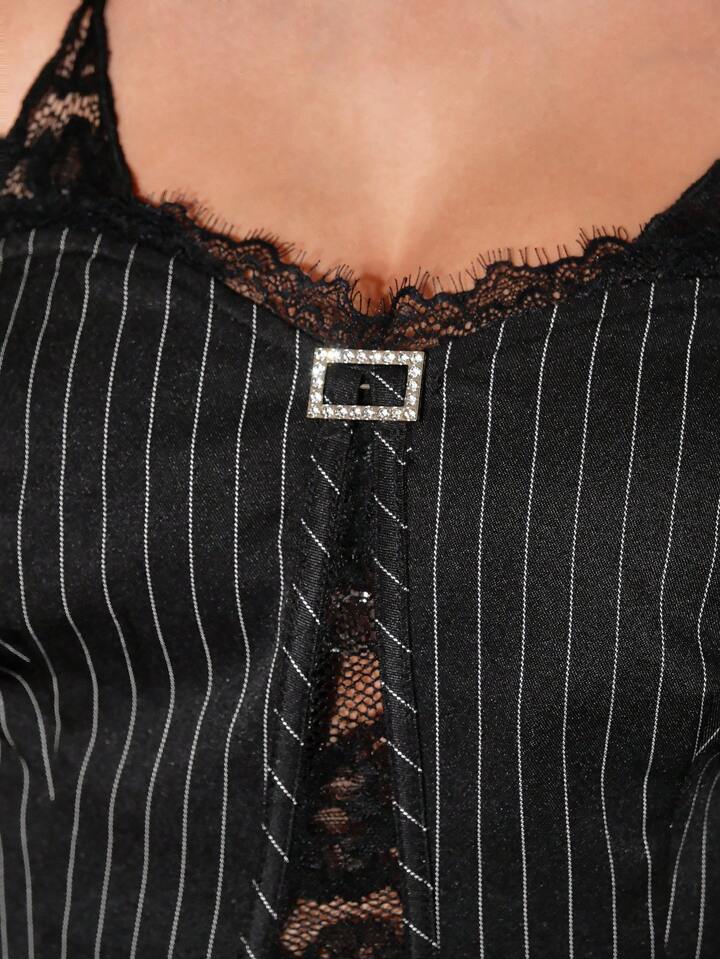 J-Fashion Women's Sexy Lace Splice Striped Backless Halter Mini Dress, Suitable For Summer