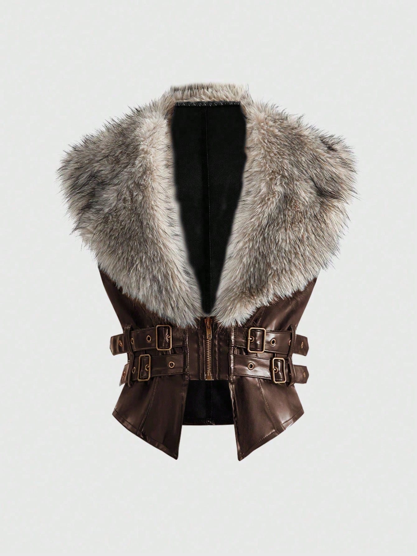 J-Fashion Y2K Autumn/Winter Detachable Faux Fur Collar Women PU Leather Jacket