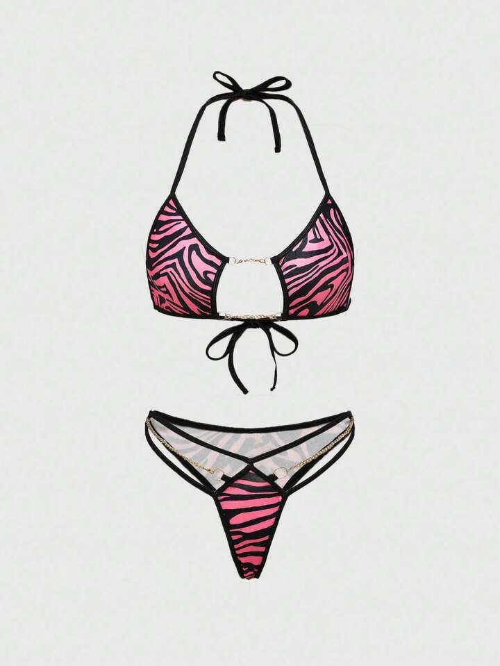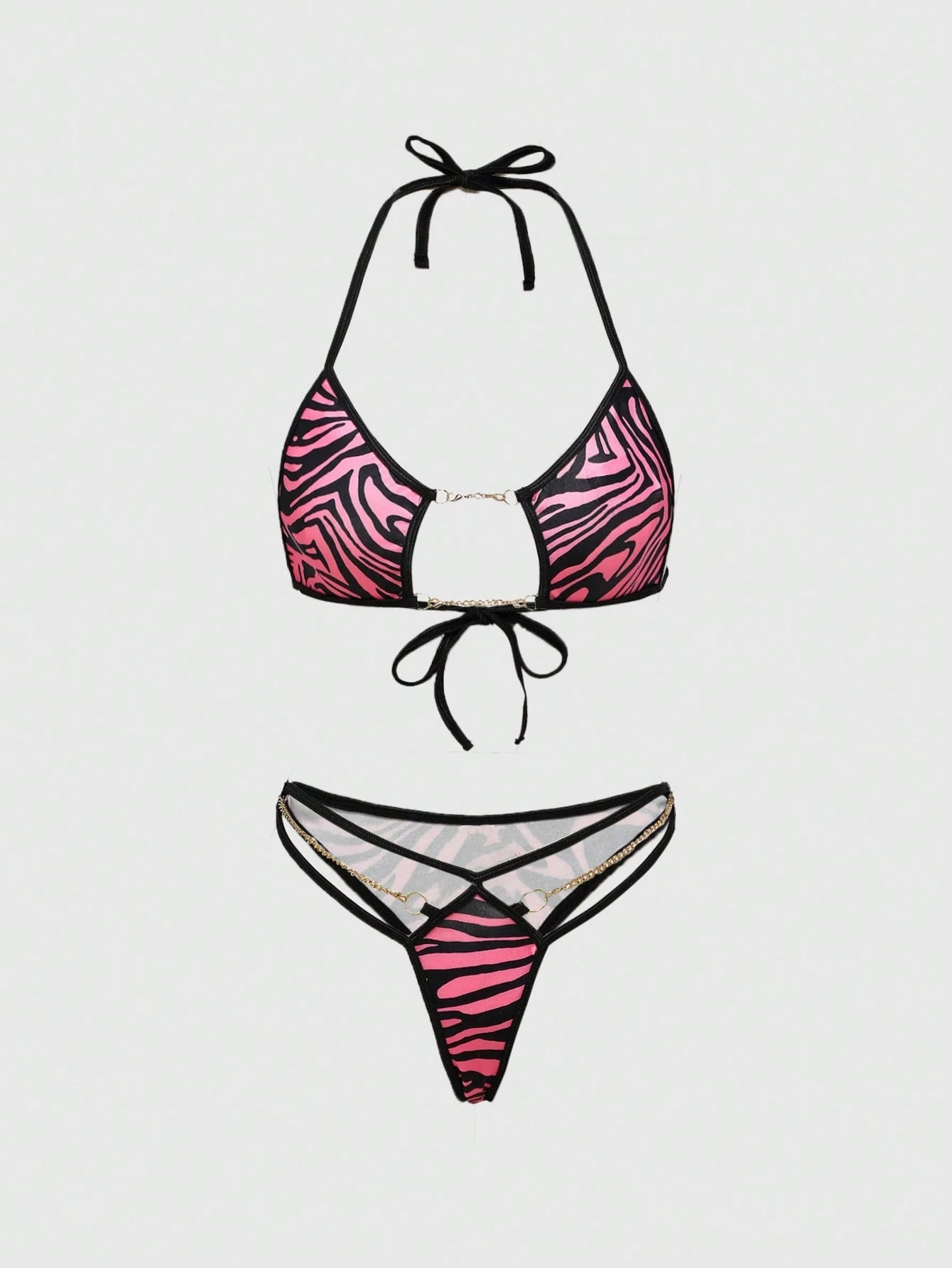 J-Fashion Y2K Avant-Garde Chain Zebra Print Women's Sexy Lingerie Set
