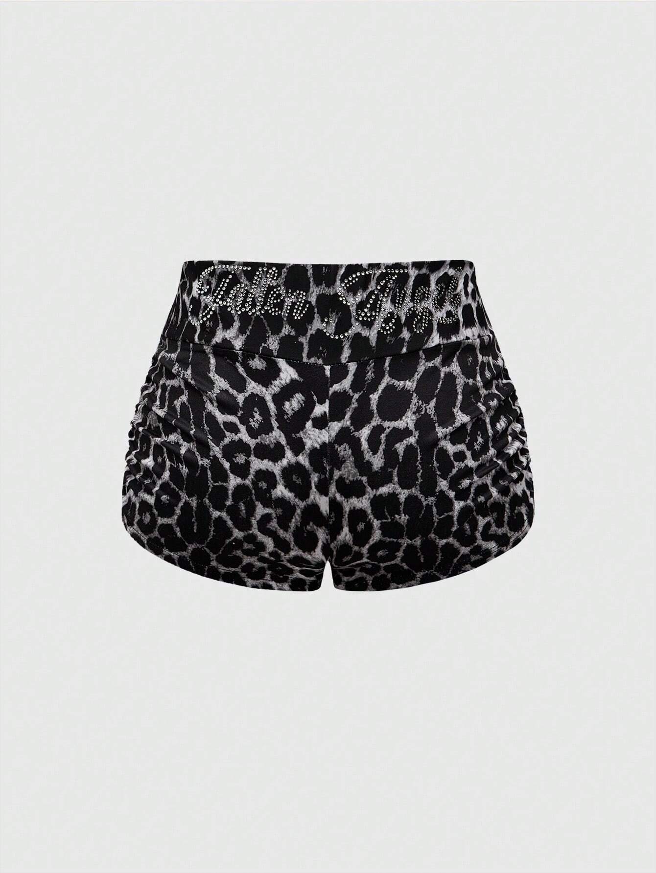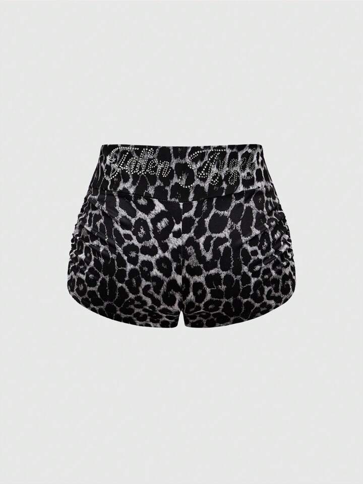 J-Fashion Y2K Cheetah Print Rhinestone Embellished Low-Rise Shorts For Women