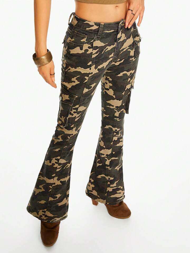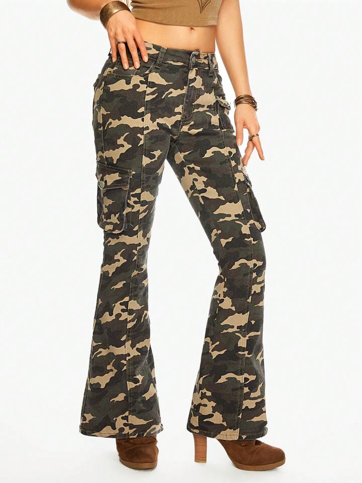 J-Fashion Y2K Harajuku Style Cargo Pocket Low Rise Camo Women Jeans