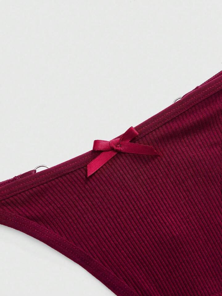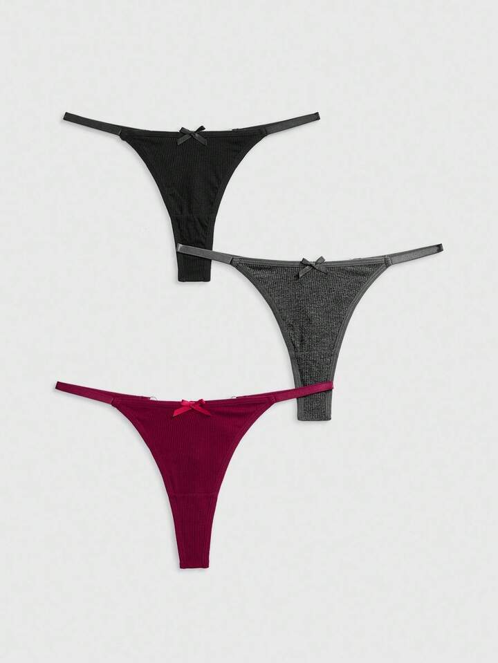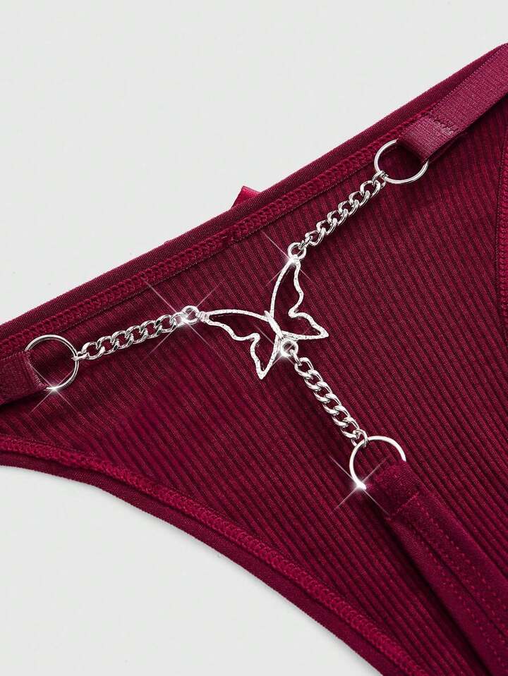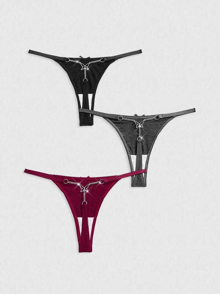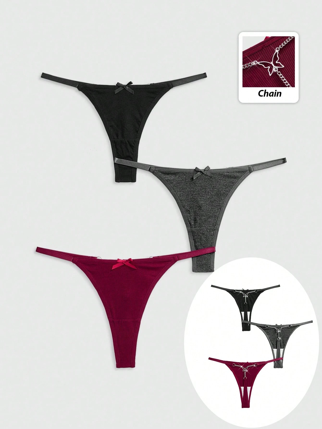 J-Fashion Y2K Shibuya Girl 3pcs Set, & Comfortable Ribbed Bowknot & Chain Thong Panty