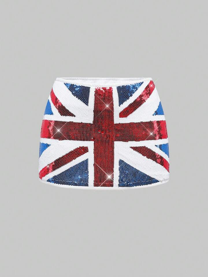 J-Fashion Y2K Sparkly Sequins UK Flag Party Mini Skirt, Cling Fit Low Waist Style For Sexy Girls