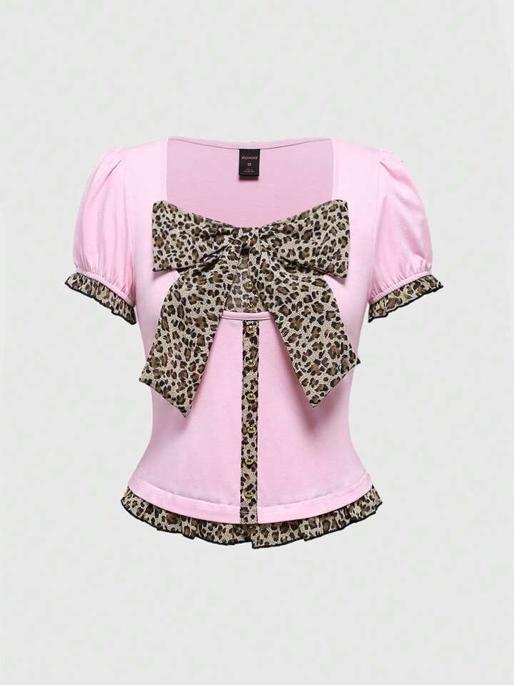 J-Fashion Y2K Style Hime-Kaji Gyaru Polka Dot & Lace Patchwork 2 In 1 Women T-Shirt