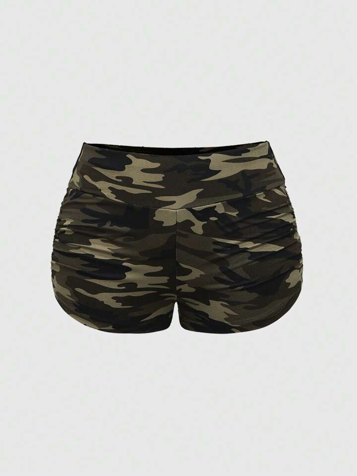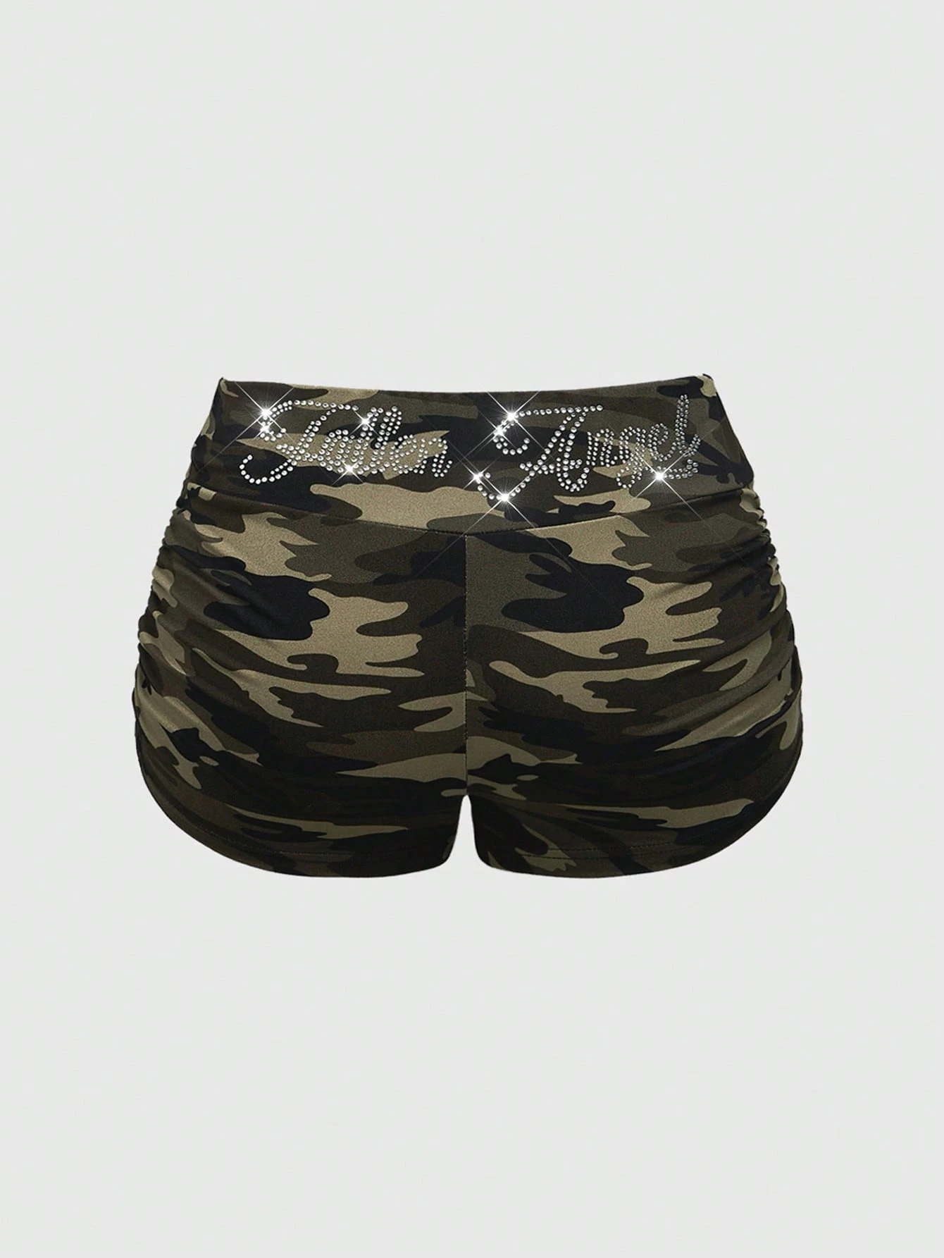 J-Fashion Y2K Style Plus Size Camouflage Ruched Skinny Rhinestone Embellished Shorts