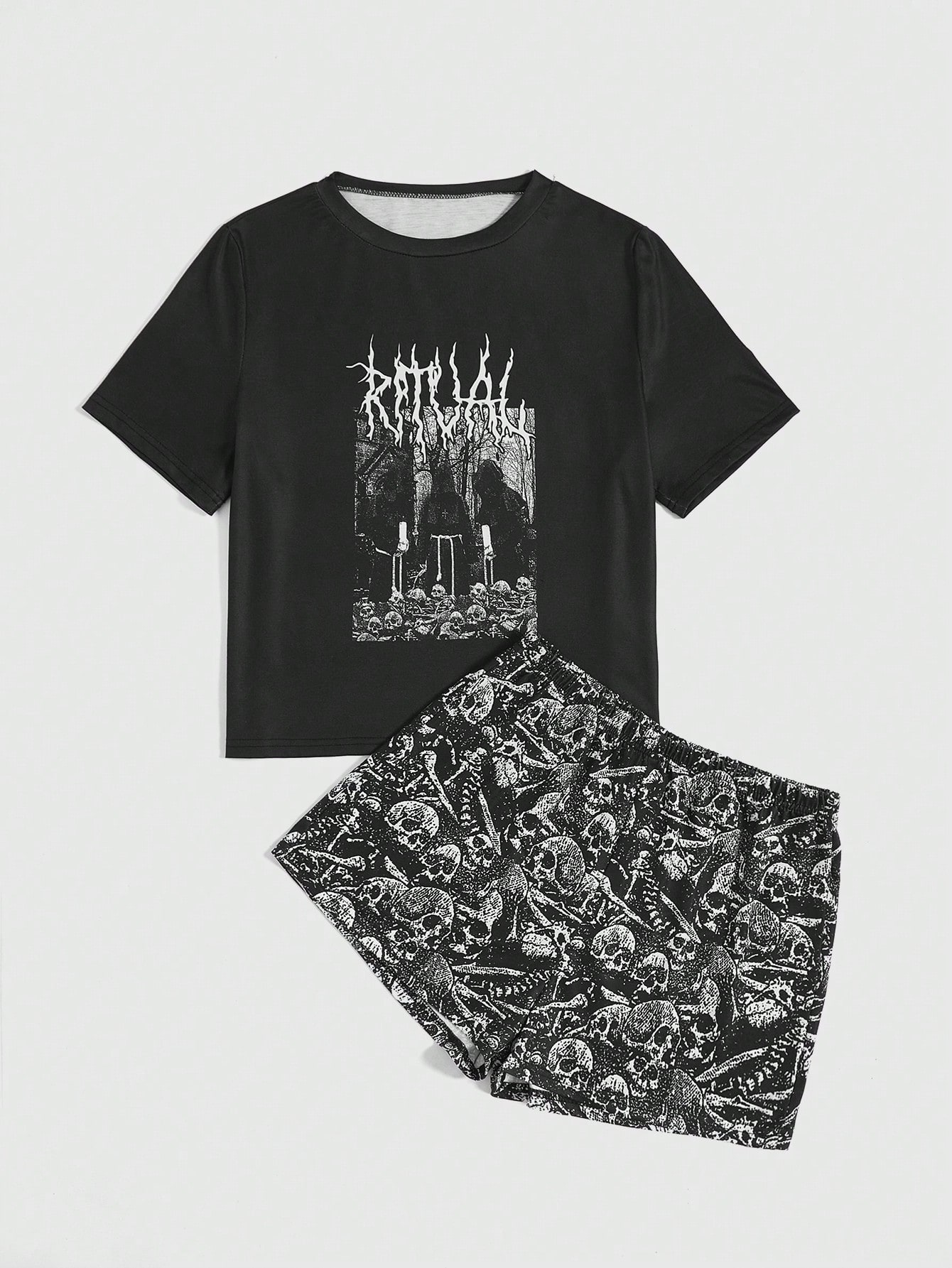 JRart Skull and Letter Graphic Tee & Shorts PJ Set