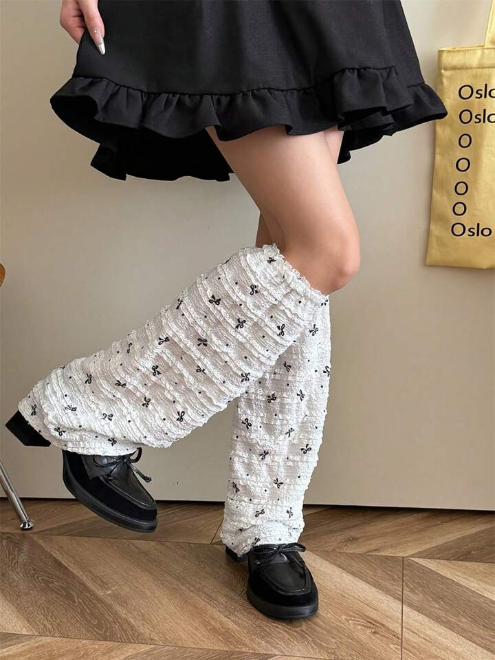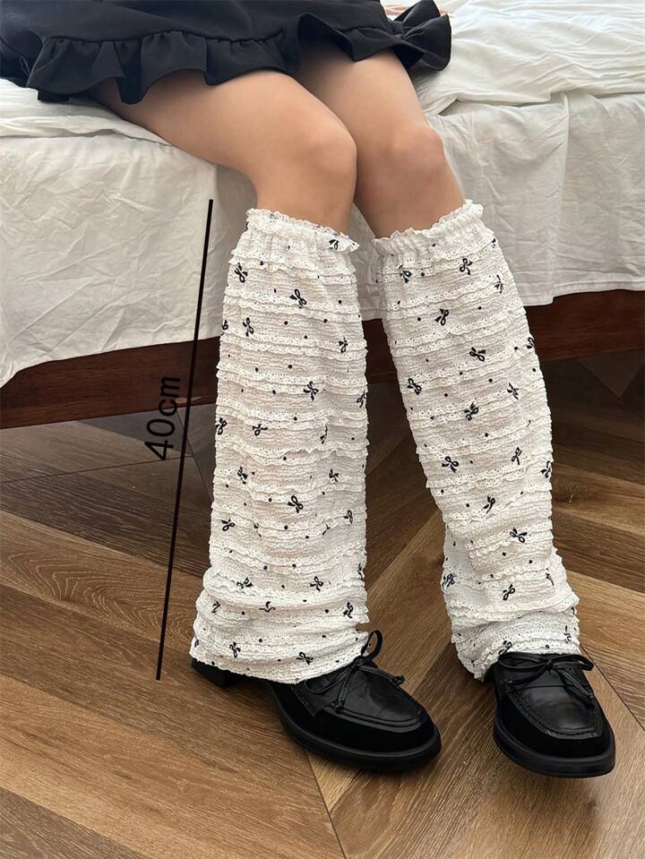 Kawaii 1 Pair Back To School Butterfly Print Ruffled Draped Casual Lace Trim Ankle Leg Warmers For Girls, White