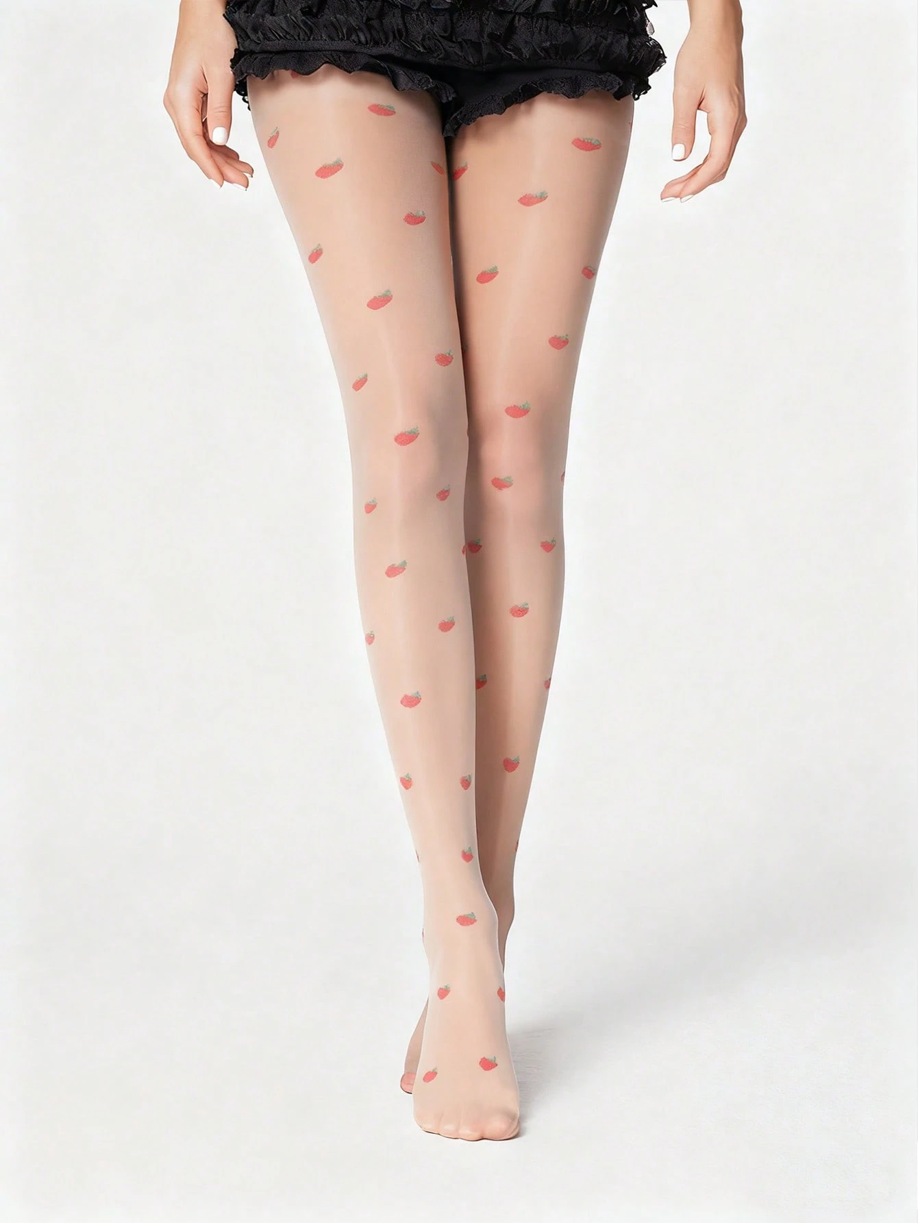 Kawaii 1 Pair Of Sexy Strawberry Pattern Pantyhose, Fruit Tight For Women,