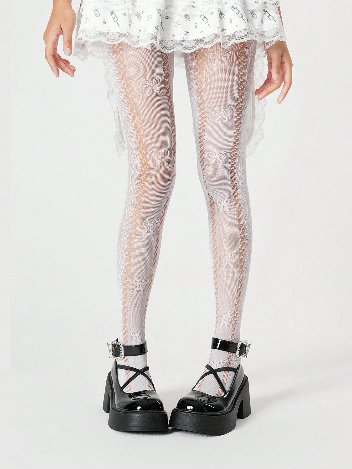 Kawaii 1 Pair Sexy Fishnet Socks With Hollow Bowknot Design, Stretchy And Sheer Stirrup Stockings For Daring Ladies