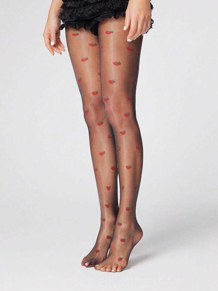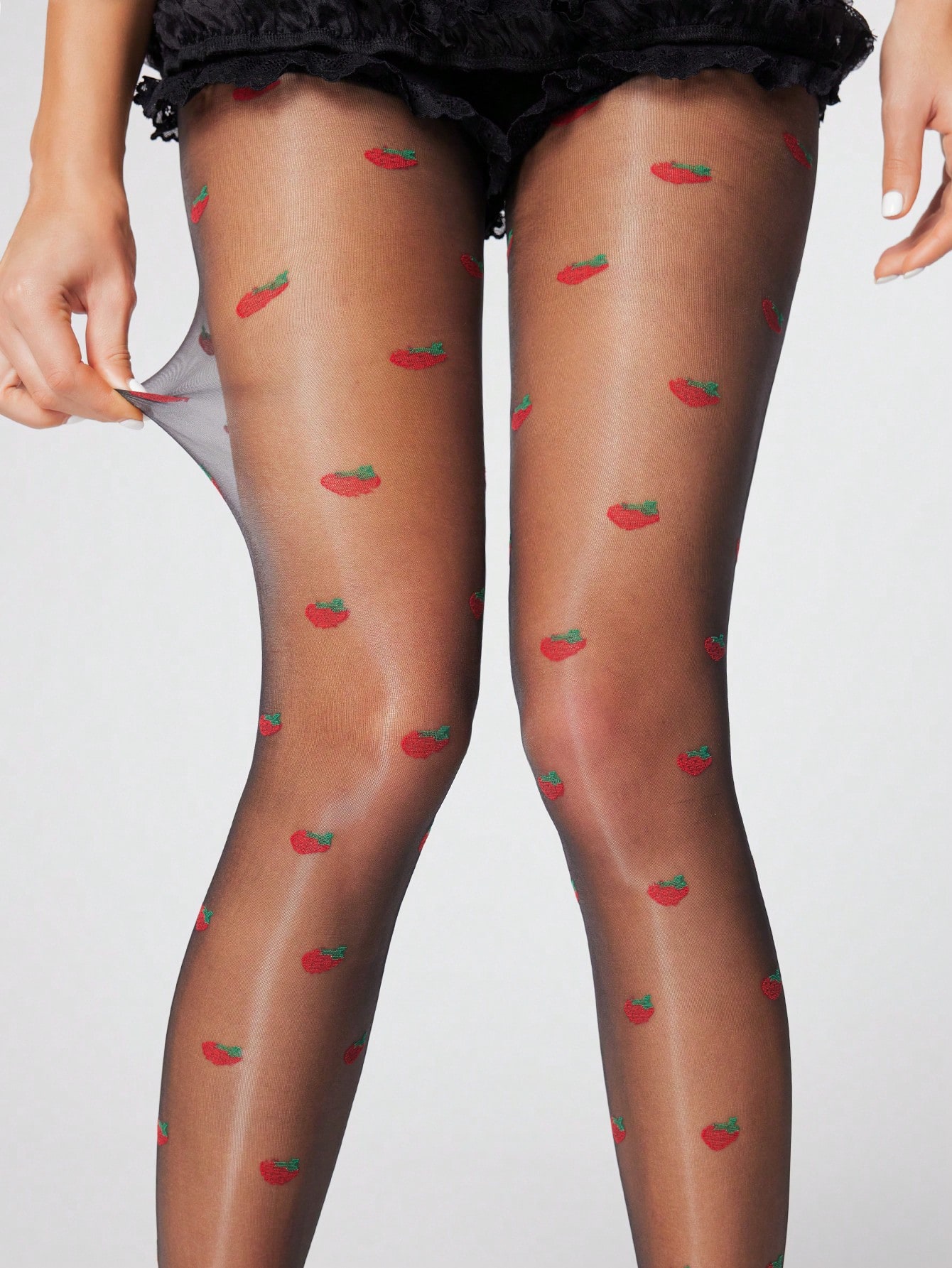 Kawaii 1 Pair Sexy Strawberry Patterned Pantyhose, Sweet Fruit Design Tights, Ultra-Thin Elastic See-Through Leggings