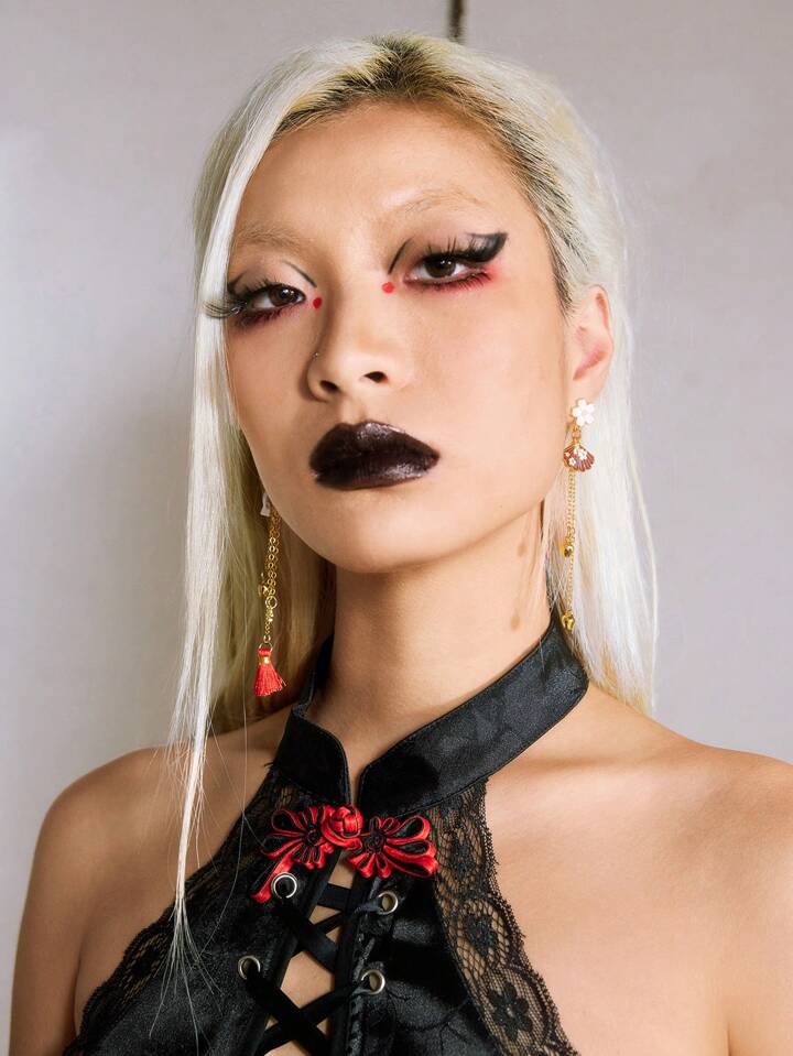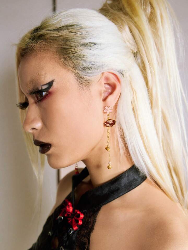 Kawaii 1 Pair Small Fox Fan Earrings, Long Tassel Japanese Style Earrings, Cute Bell Pendant Earrings, Niche Design