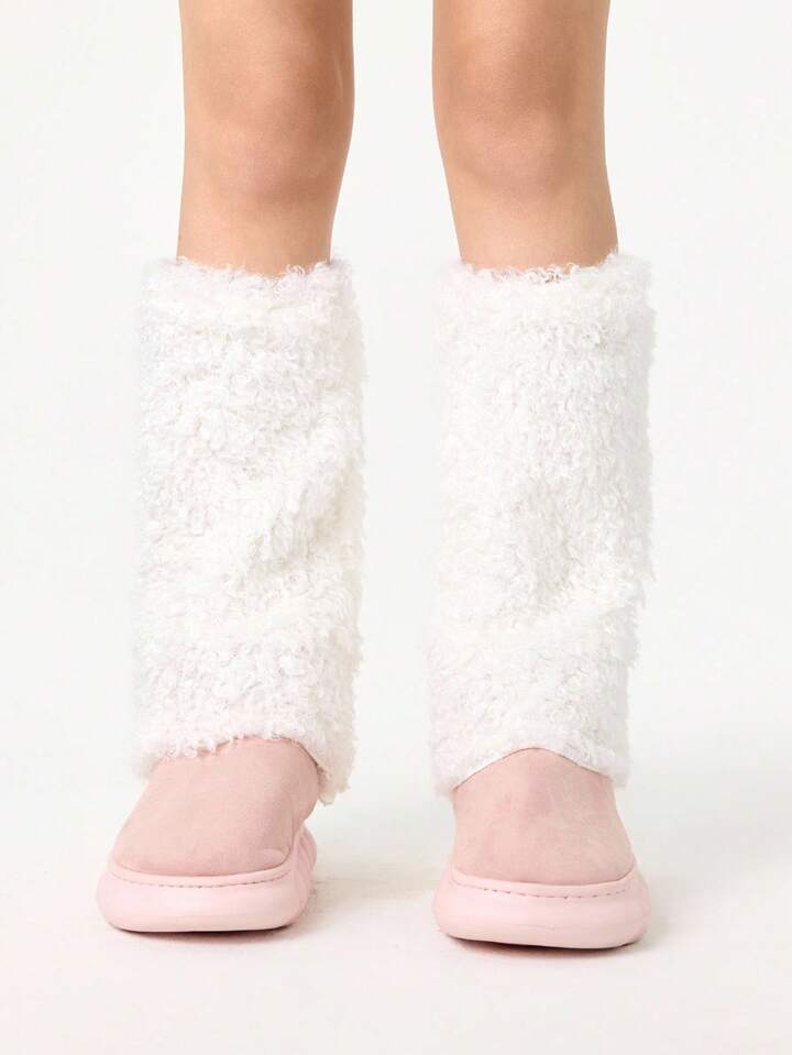 Kawaii 1 Pair White Warm & Cute Ladies Leg Warmers, Suitable For Pairing With Mini Skirts