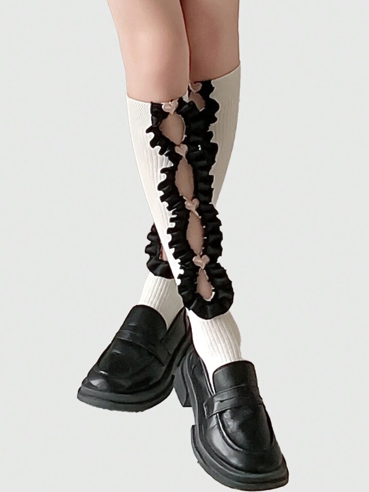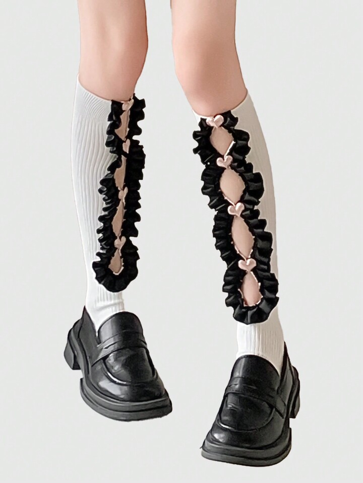 Kawaii 1 Pair Women White Heart Lace Hollow Out Over-The-Knee Socks