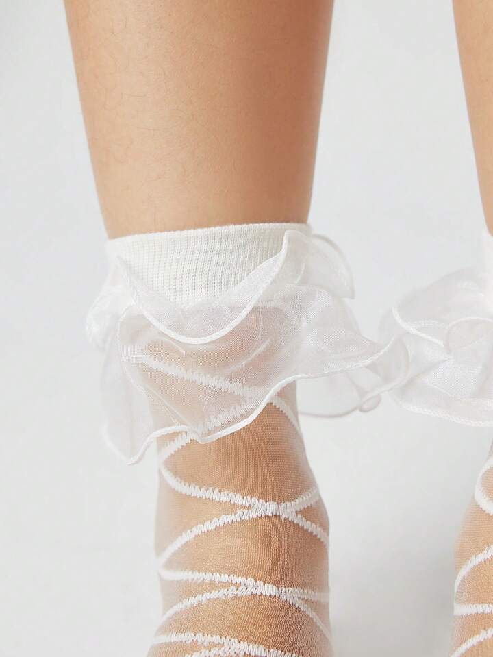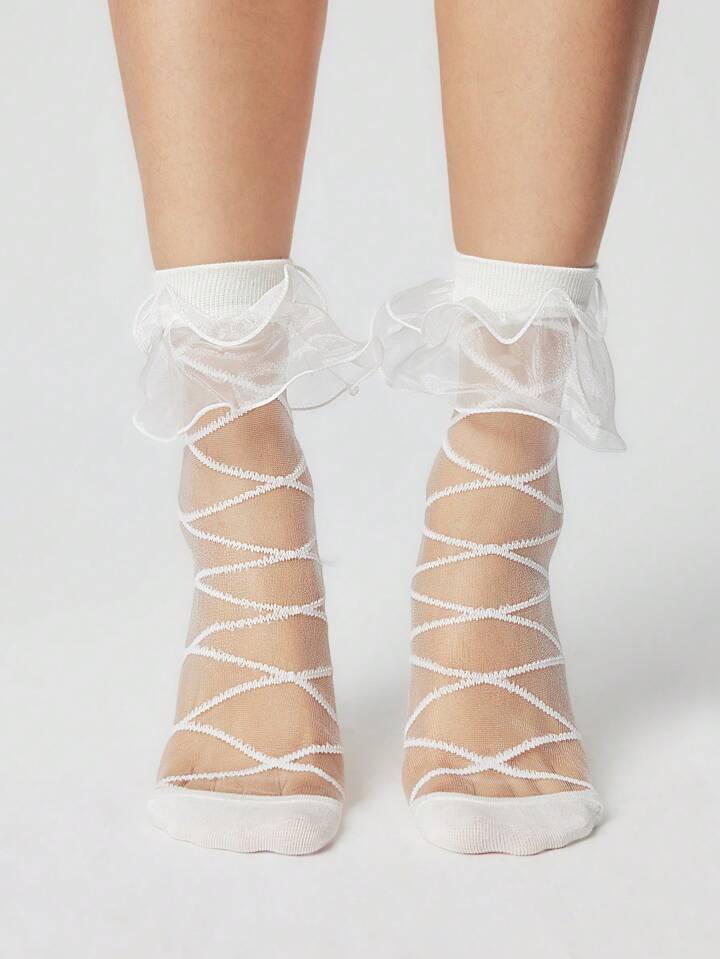 Kawaii 1 Pair Women's All Season Sweet & Cool Double-Layer Crystal Mesh Edge Crisscross Liner Socks