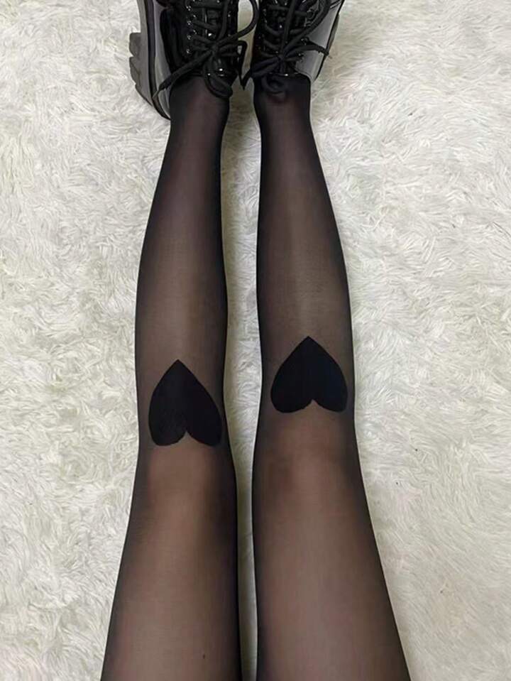 Kawaii 1 Pair Women's Sexy Black Heart Pattern Knee-high Pantyhose For All Seasons
