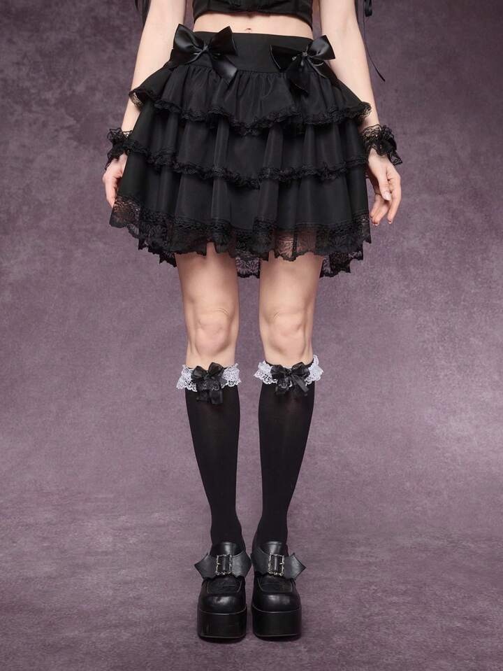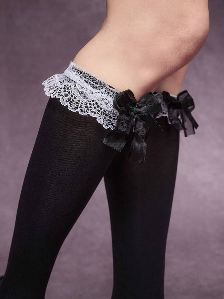 Kawaii 1 Pair Women's Sweet & Cool Lace Trim Bow Nylon Knee High Socks, All Season