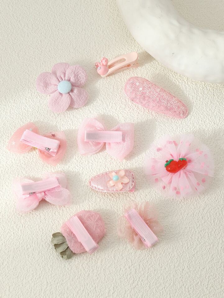 Kawaii 10pcs Flower & Bow Decor Hair Clip