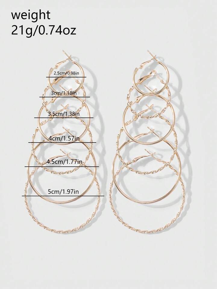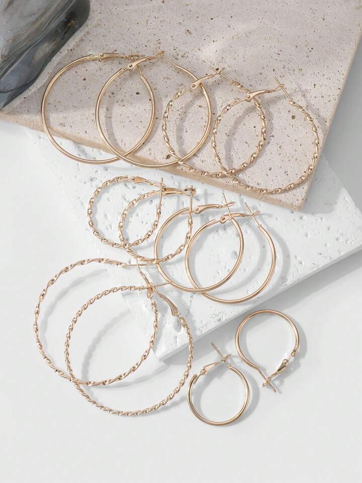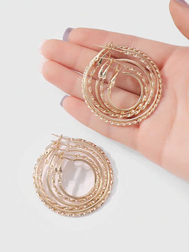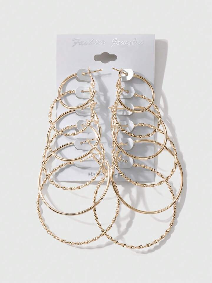 Kawaii 12pcs Y2K European & American Retro Luxury Fashion Classic Nightclub Style Gold Tone Circular Threaded Earrings, Suitable For Women & Girls Daily Wear, Holiday Gift