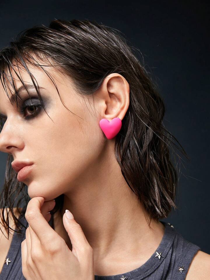 Kawaii 1pair Cute Acrylic Heart Stud Earrings For Women For Daily Decoration