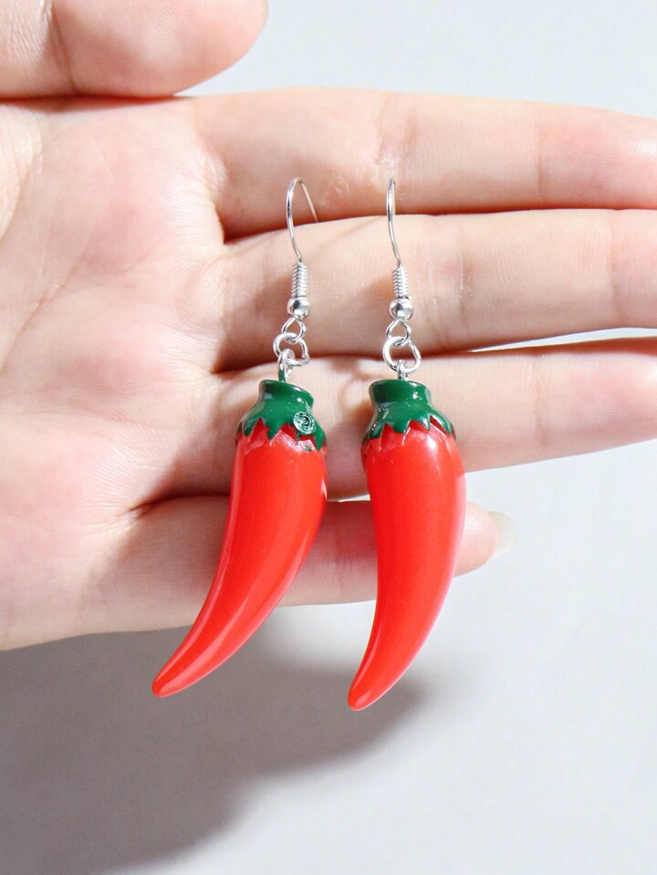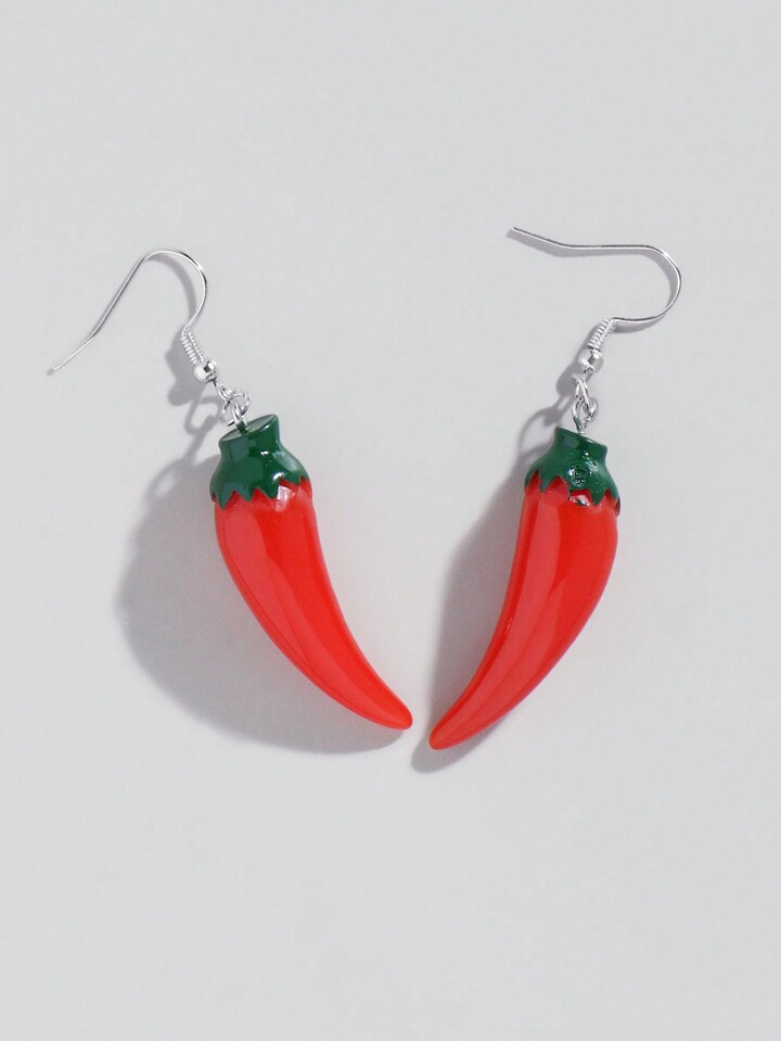 Kawaii 1pair Cute Faux Resin Vegetable Chili Pepper Pendant Earrings, Spring Summer