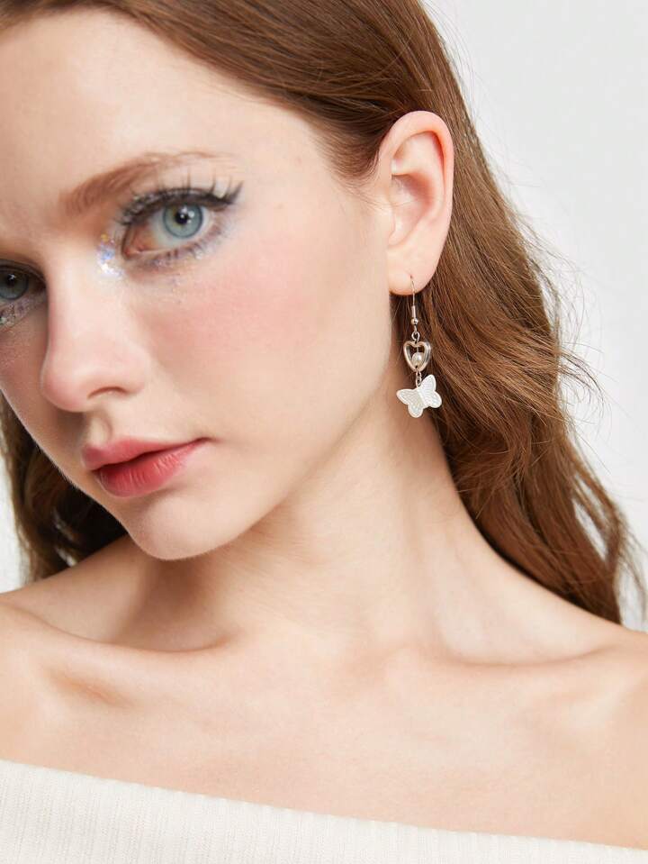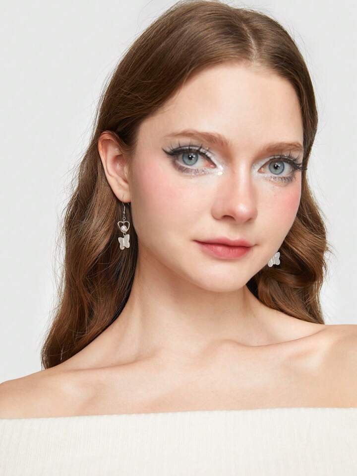 Kawaii 1pair Fashion Iron Alloy Butterfly Drop Earrings For Women For Daily Decoration