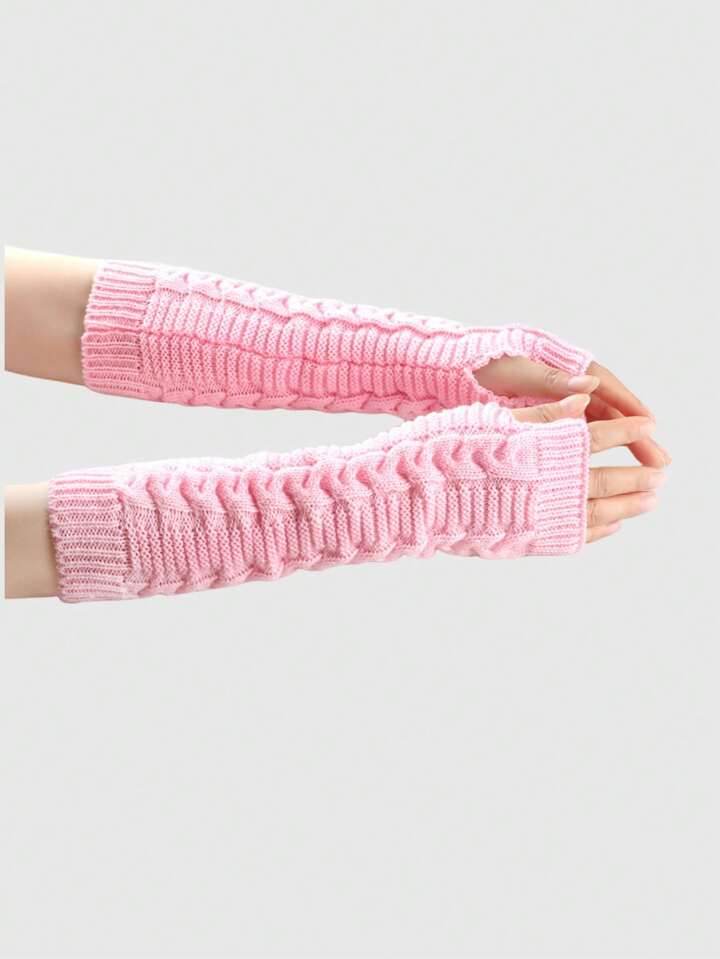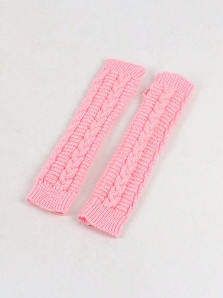 Kawaii 1pair Pink Knitted Women's Arm Warmers, Autumn/winter
