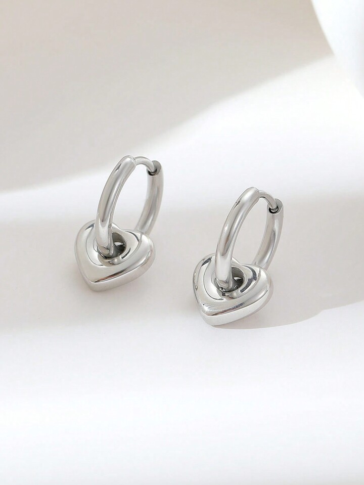Kawaii 1pair Silver-color Heart Shaped Earrings