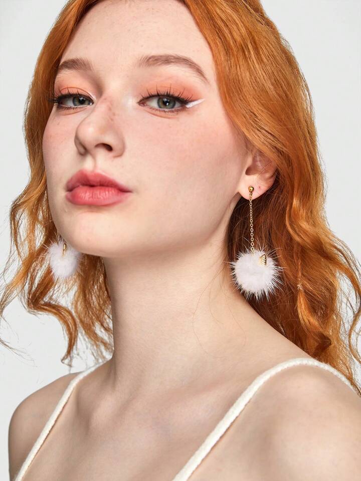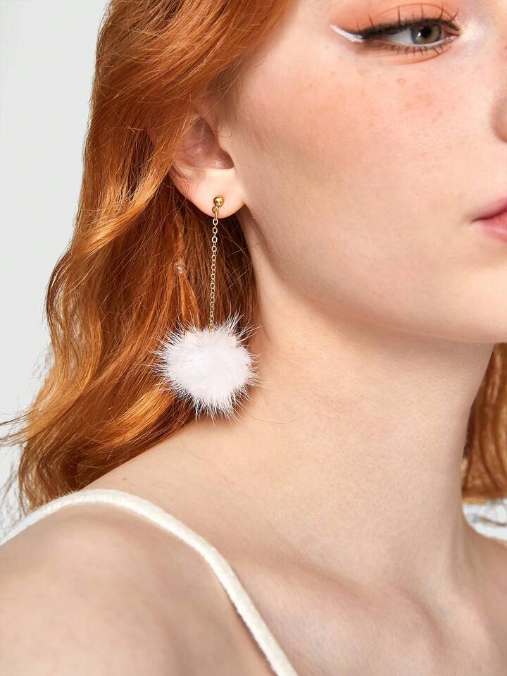 Kawaii 1pair Sweet Fur Ball & Cat Ear & Tassel Dangle Earrings