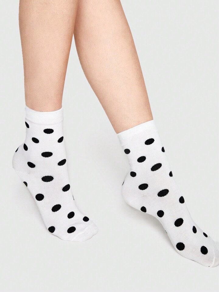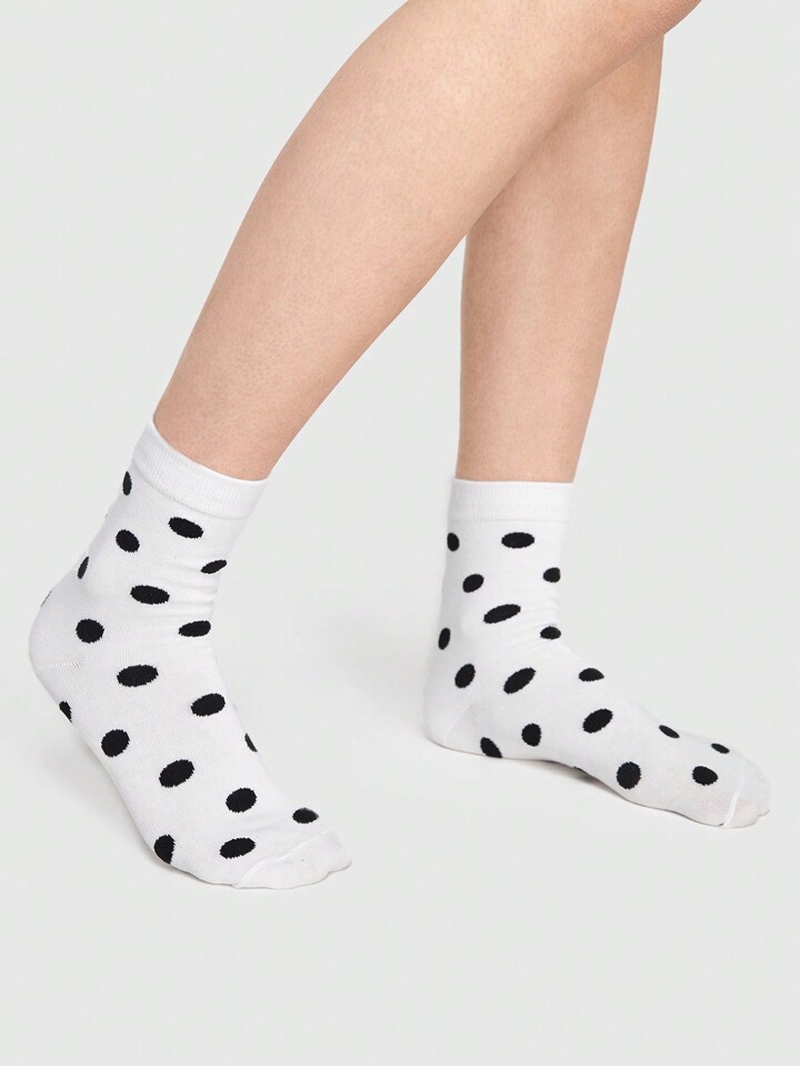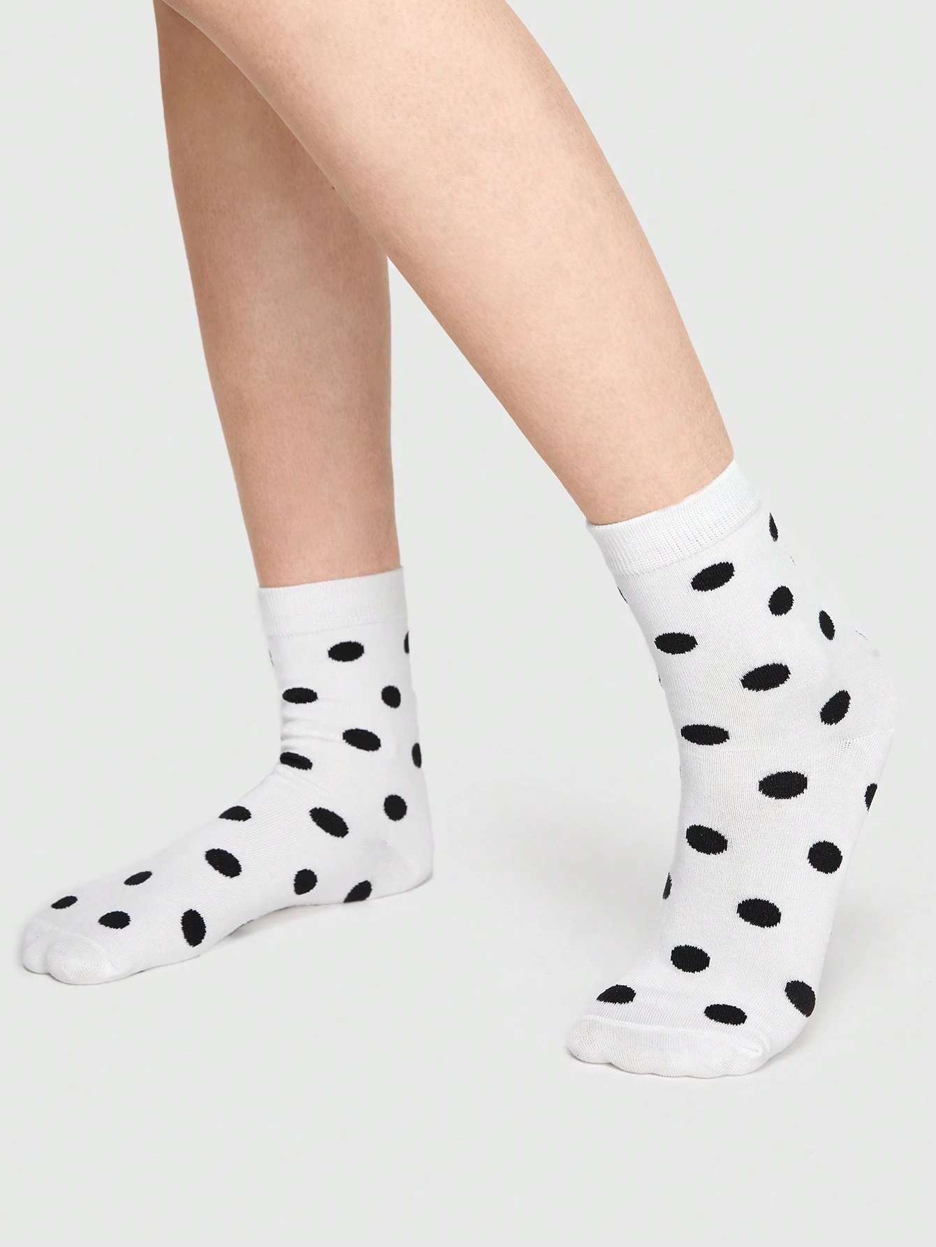 Kawaii 1pair Teen Girls' Black Dotted White Socks For All Seasons