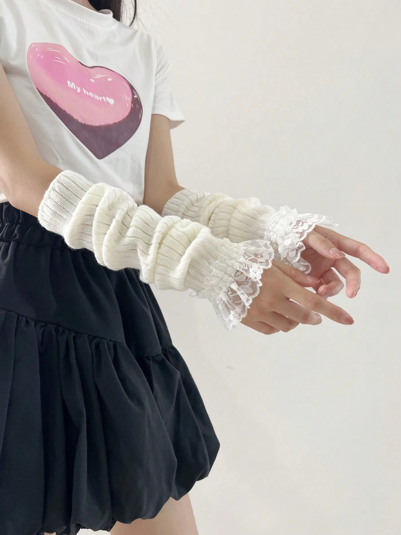 Kawaii 1pair Women Contrast Lace Arm Sleeves