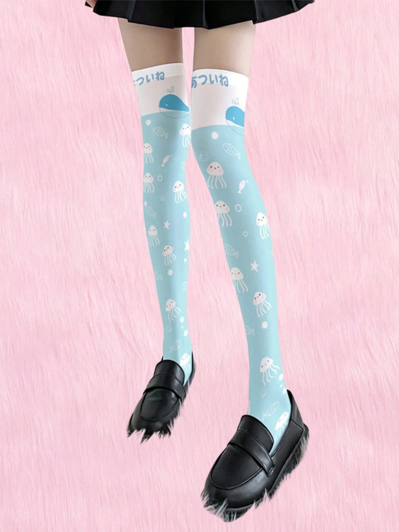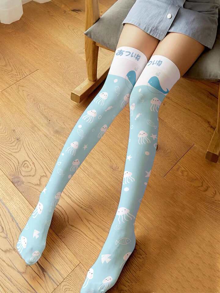 Kawaii 1pair Women Fish Pattern Fashion Over The Knee Socks For Daily Life